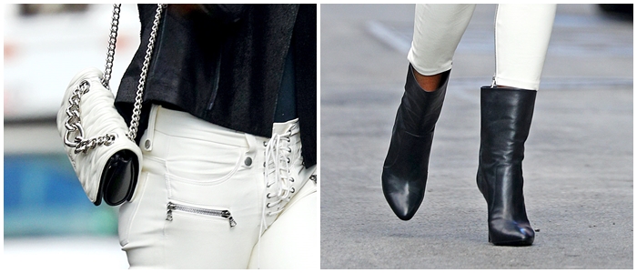 バッグとショートブーツもモノトーンで揃えた、モデルらしいトータルコーデを披露して。
