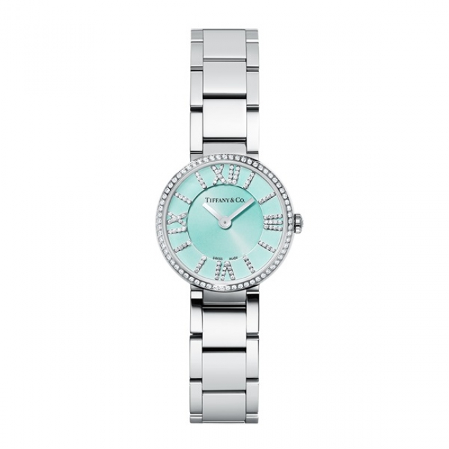 ティファニーは、「ティファニー アトラス」コレクションの24mm径レディースウォッチから、文字盤のカラーにアイコニックなティファニーブルーを採用した新作の発売を開始。(フロントロウ編集部)