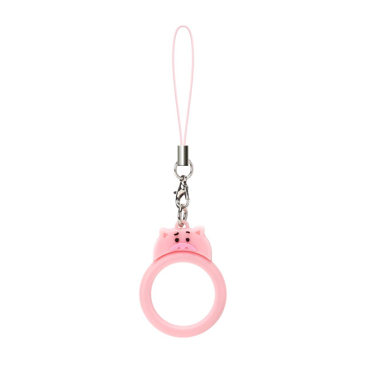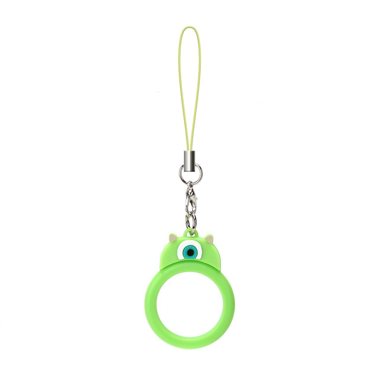 「トイ・ストーリー」のキャラクターデザインと「モンスターズ・インク」のキャラクターデザインのリングストラップです。キャラクターのフェイスモチーフのポップなデザインになっている。