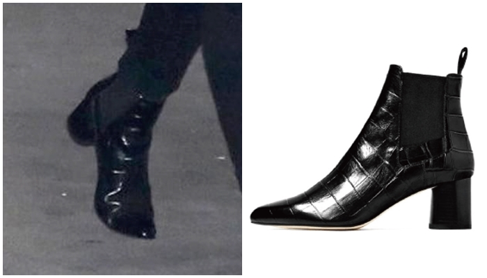 クロコのプリントが型押しされているリッチ感のあるZara(ザラ)のショートブーツは、トレンドのチャンキーヒールで歩きやすいのも嬉しい。