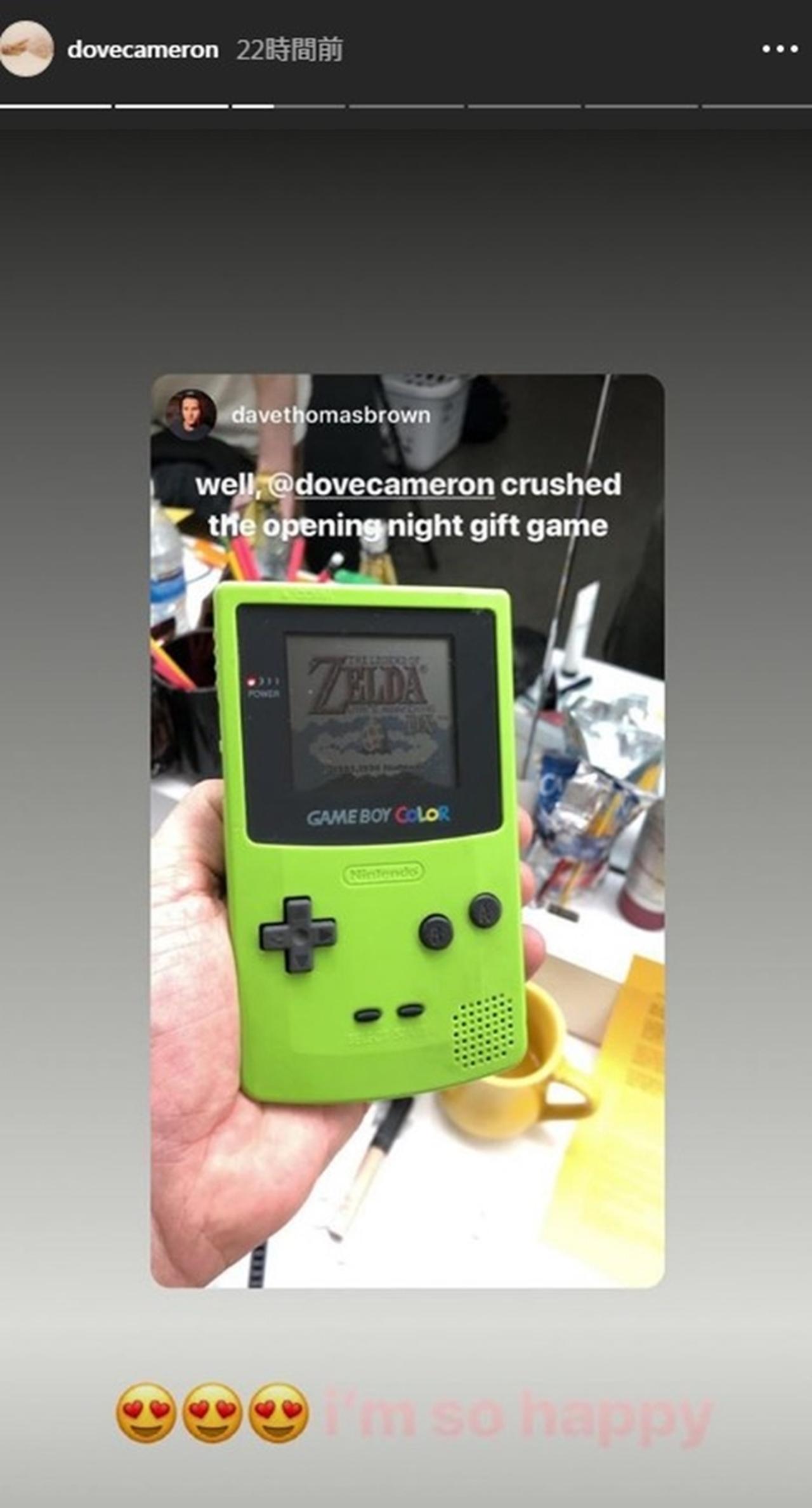 それは日本のゲーム会社任天堂のゲームボーイカラーと「ゼルダの冒険」のソフト。キャストたちはこのサプライズプレゼントに大喜び。各自ダヴからもらったゲームボーイを自身のインスタグラムにアップして報告した。