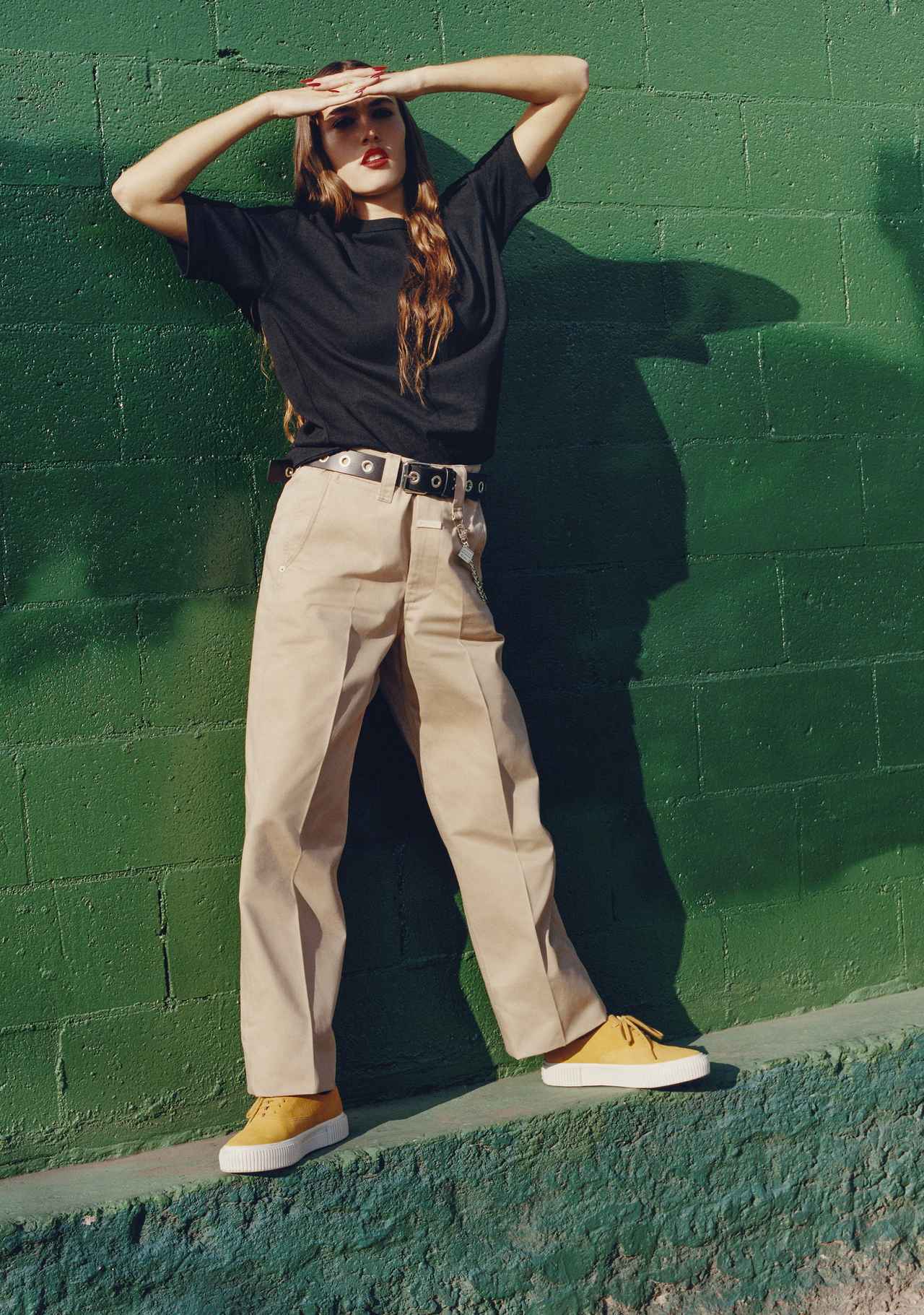 コレクションには、レザー、スウェード、コットンキャンバスを使用したスニーカー、シューズ、ブーツのほか、コットンツイル、パテント、ナイロン、ローデニムといった素材のジャケットやトップス、そしてパンツやデニムが登場。