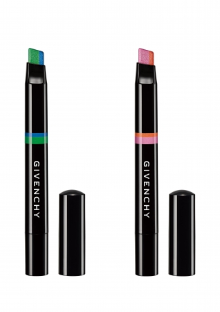 2色のカラーを同時に描くことができるペン型アイシャドウ「デュアル・ライナー」。虹の7色から発想を得た、寒色と暖色の2つのハーモニー。No.03 ダイナミックは、鮮やかなグリーンにブルーを、No.04 パッショネイトは、キュートなピンクにオレンジを組み合わせた。