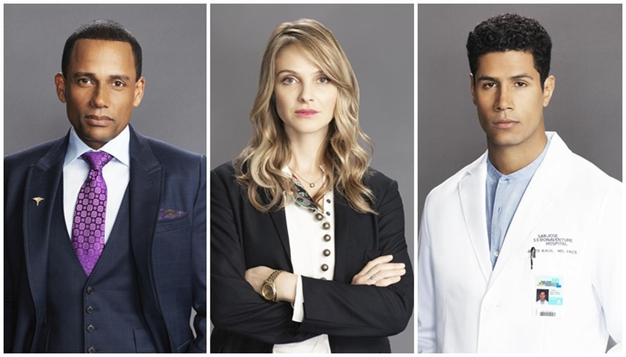 左から:アンドリュー医師役のヒル・ハーパー、プレストン理事役のボー・ギャレット、カル―医師役のチュク・モデュ―。©2017, 2018 Sony Pictures Television Inc. and Disney Enterprises, Inc.All 6ights Reserved.