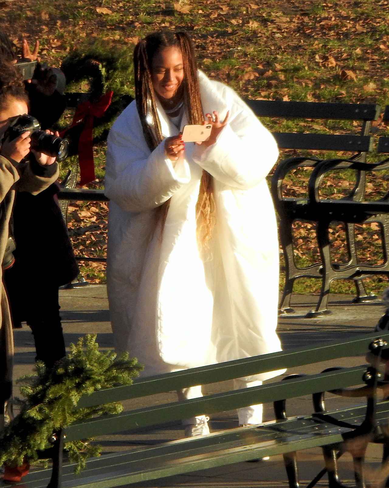 しかし、ビヨンセが撮影しているのは無人のベンチ。ニューヨークの公園に設置された何気ないベンチをビヨンセが撮影しているのには、ある理由があった。実はこのベンチは、ビヨンセとジェイが、ジェイの祖母であるハッティ・ホワイトへプレゼントとして贈ったもの。ベンチには、アメリカの投資家であるウォーレン・バフェットの名言「今日誰かが木陰で休むことができるのは、遠い昔、誰かが木を植えてくれたから」という言葉と一緒に、「愛と称賛を私たちのルーツ、ハッティ・ホワイトへ」というビヨンセ一家のメッセージが添えられている。そんなベンチを見るために家族全員で公園を訪れるというレアな姿を見せた。