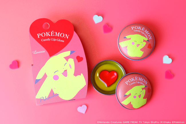 「ポケモンキャンディリップグロス」は甘いはちみつの香り付きで、リップの内側(ハート)と外側(ハートのまわり)の成分が異なり2WAYで楽しめる。