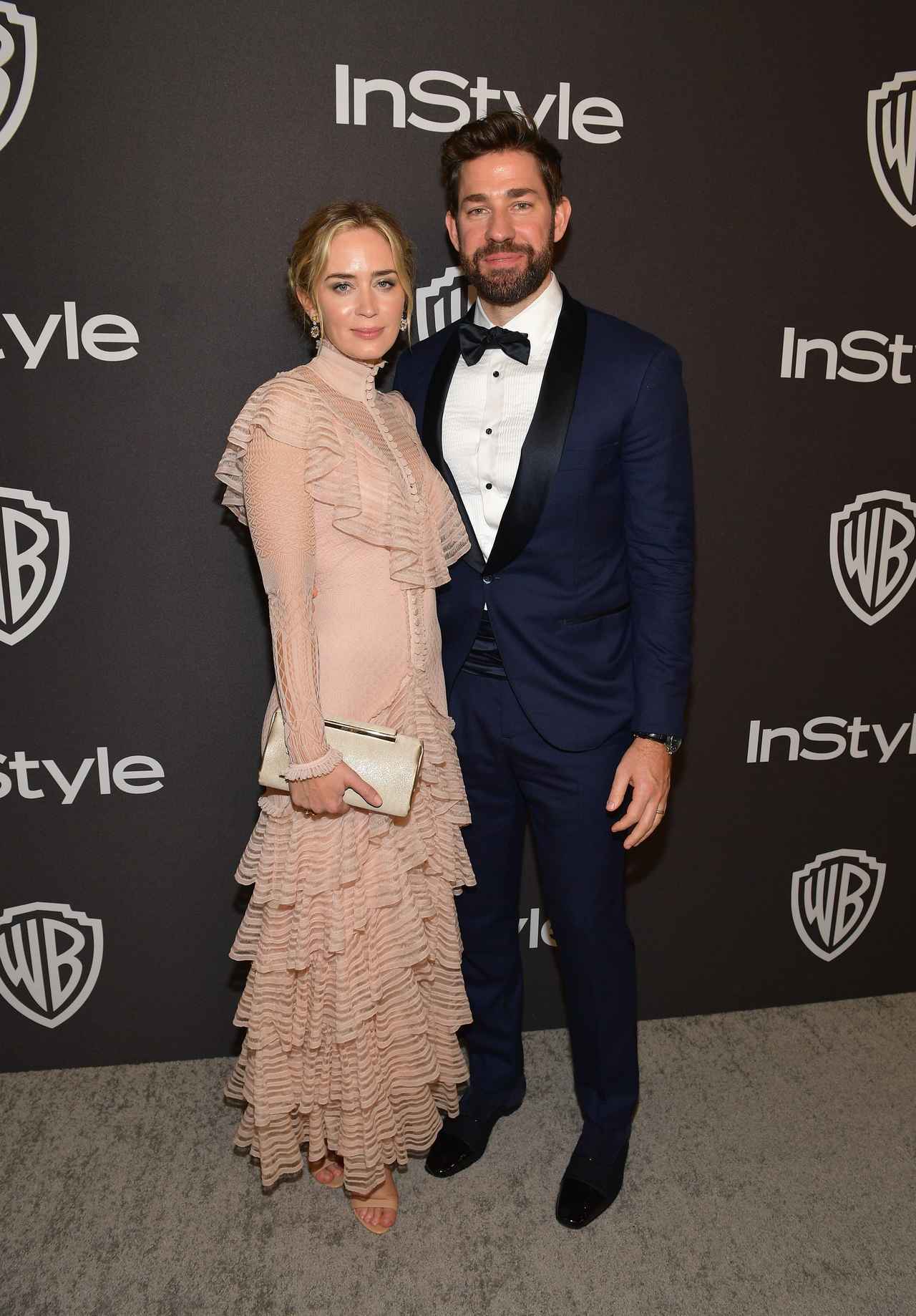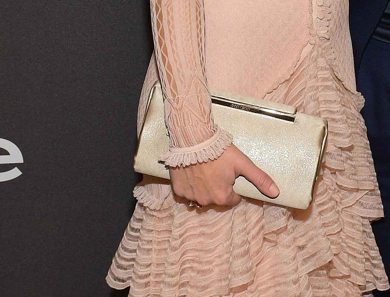 ベージュピンクが可憐なアレキサンダー・マックイーン(Alexander McQueen)のラッフルドレスをゴールデン・グローブ賞アフターパーティで着用したのは、話題の映画『メリー・ポピンズ リターンズ』主演女優のエミリー・ブラント。品よく輝くパールホワイトのクラッチバッグは、ジミー チュウの“CAY”クラッチ。