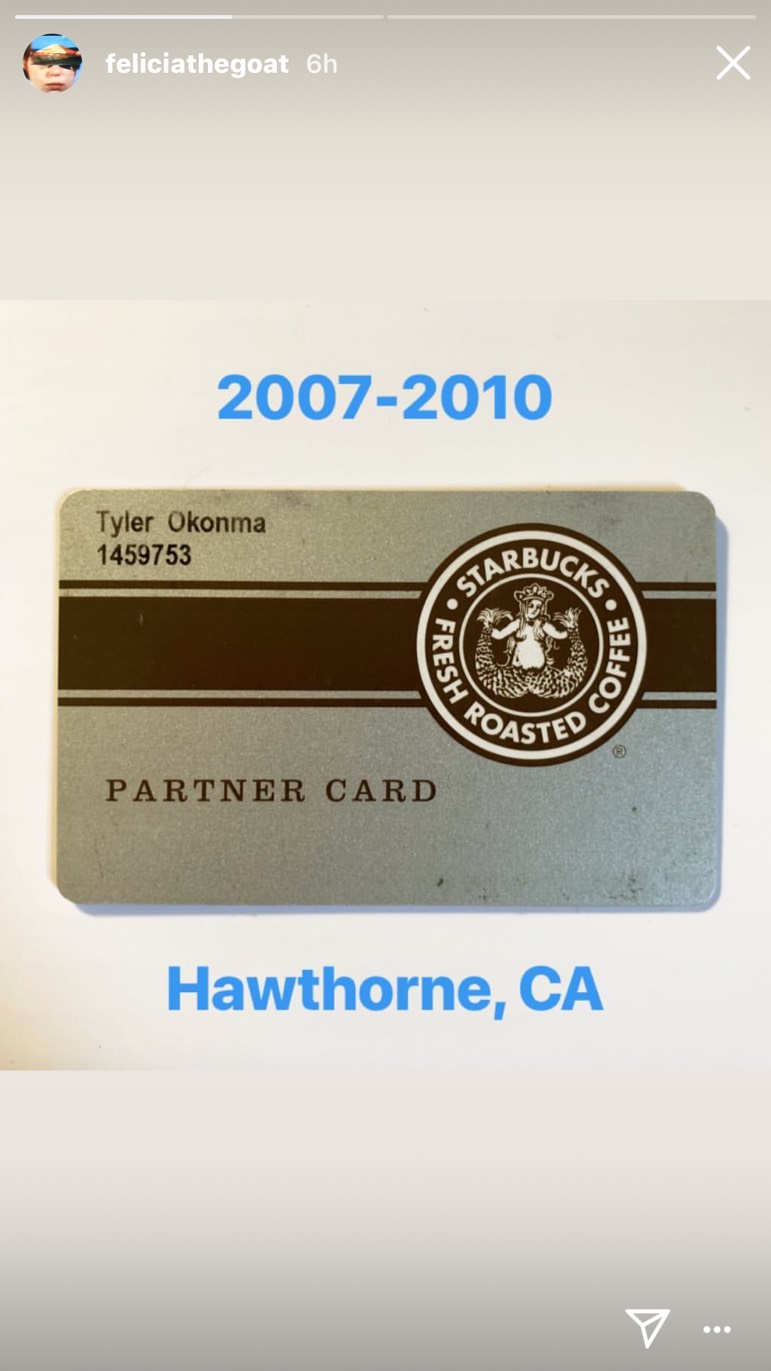 従業員のカードとユニフォームを着たタイラーの写真を公開し、2007年から2010年まで、米カリフォルニア州ホーソーンにある店舗で働いていたことを明かした。