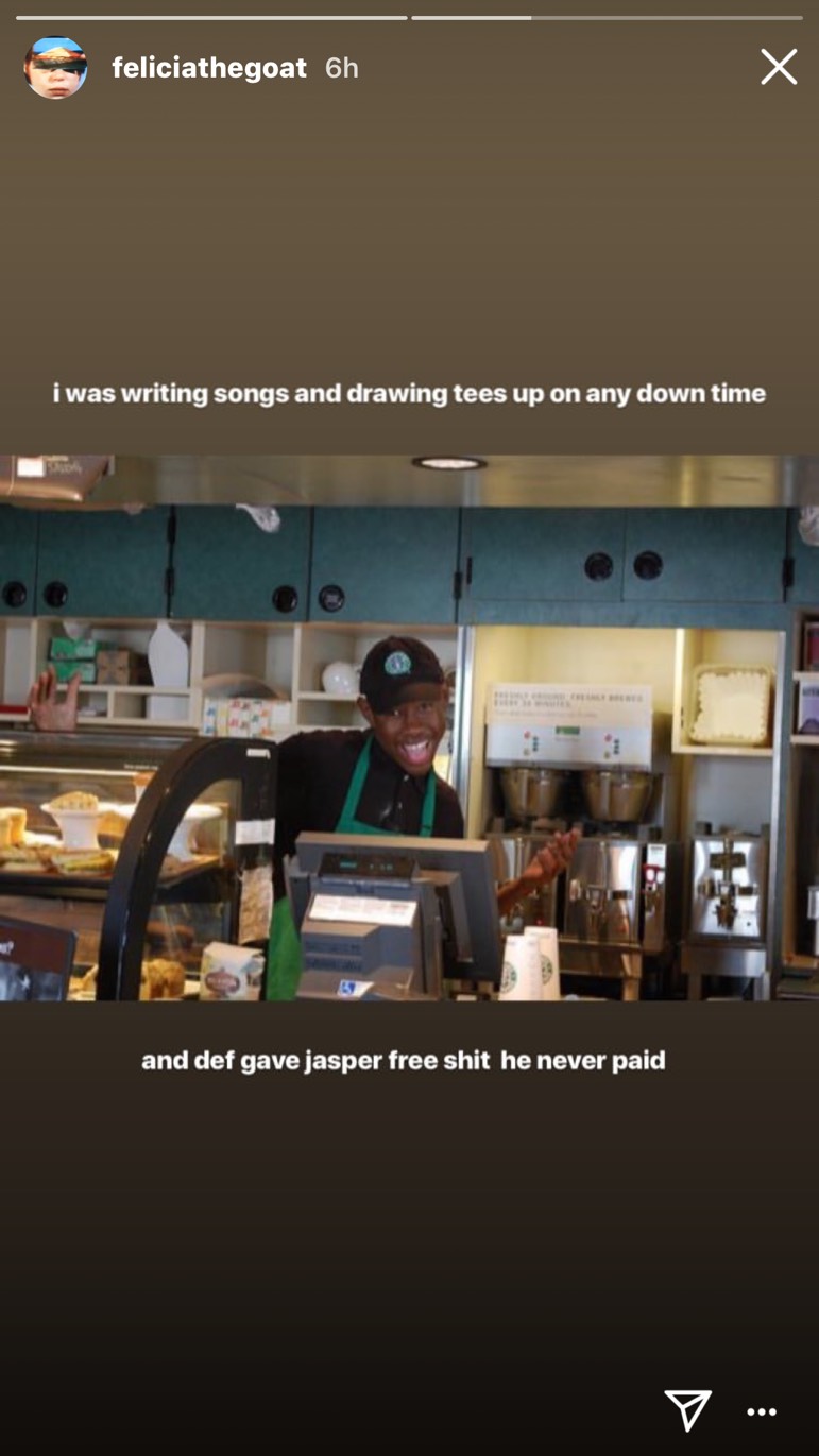 また、当時のタイラーは、自身がリーダーとして率いるクリエイティブグループのOFWGKTAのメンバーで友人のジャスパー・ドルフィンに無料で商品をあげるルール違反をしていたことも暴露。