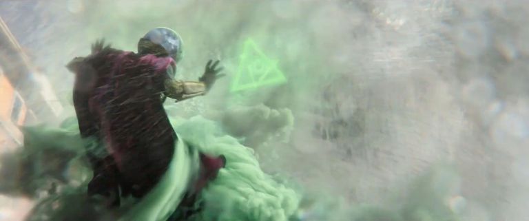 イタリアの人気観光地ヴェニスを訪れたピーターの前には、水でできた巨大なモンスターが出現。そこへ、窮地に追い込まれたピーターや人々を救うために、どこからともなく緑色の煙とともに姿を現したのが、ジェイク演じる“ミステリオ”だった…。