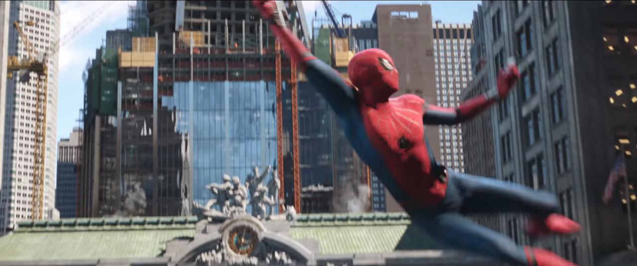 トム演じるピーター・パーカーがスパイダーマンとしてニューヨークの街を巡回している時に、人々の銅像がある建物の上部が一瞬映る。