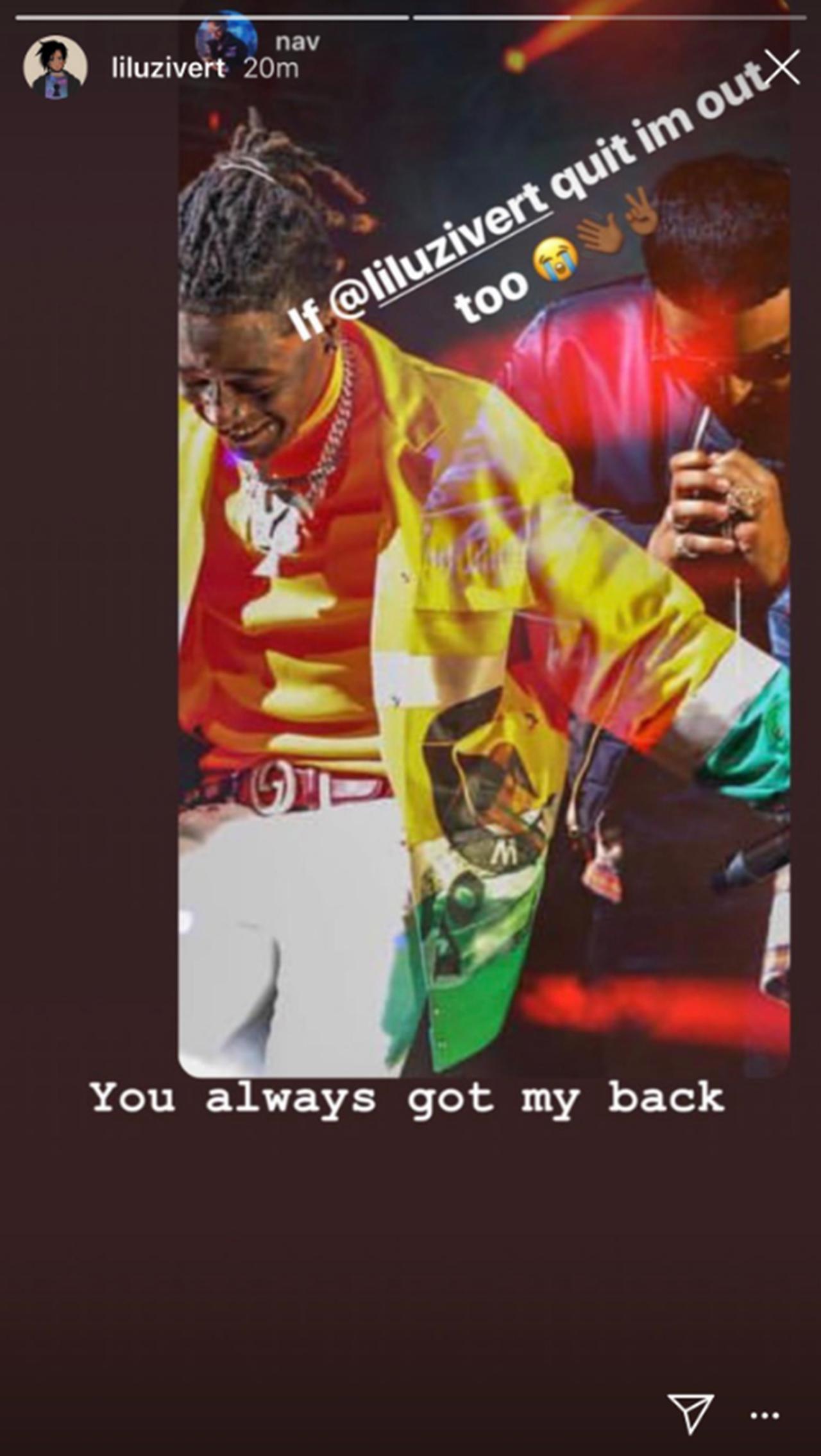 ところがそんなリルの投稿を、友人でもありコラボ楽曲「ウォンテッド・ユー」をリリースしたナーヴが発見。するとナーヴはリルとの写真と共に「もしリルが(音楽を)止めるなら俺も止める」とコメントし、自身の進退をかけてリルの引退を引き留め、男のアツい友情を見せた。