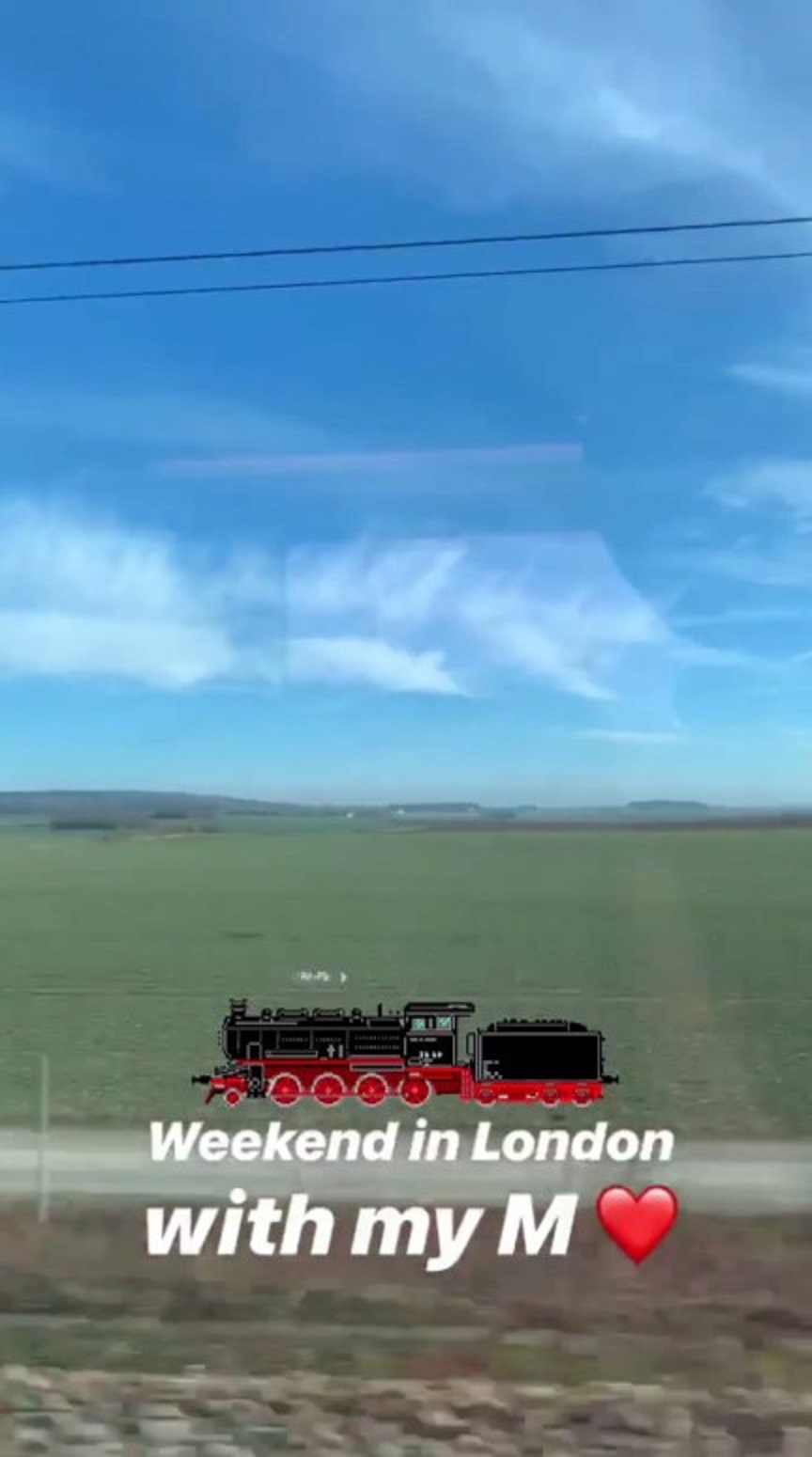 ダニエルがインスタグラムストーリーで公開した、列車の車窓からの景色を撮影した1枚には「“M”と過ごすロンドンの週末」とワクワクが止まらない心境を表すコメントが。