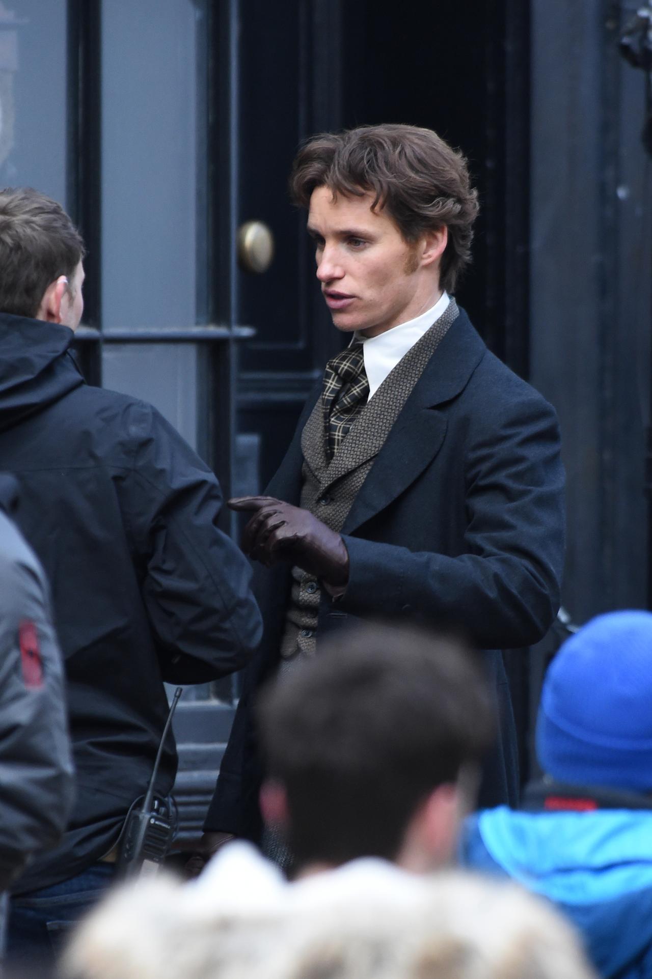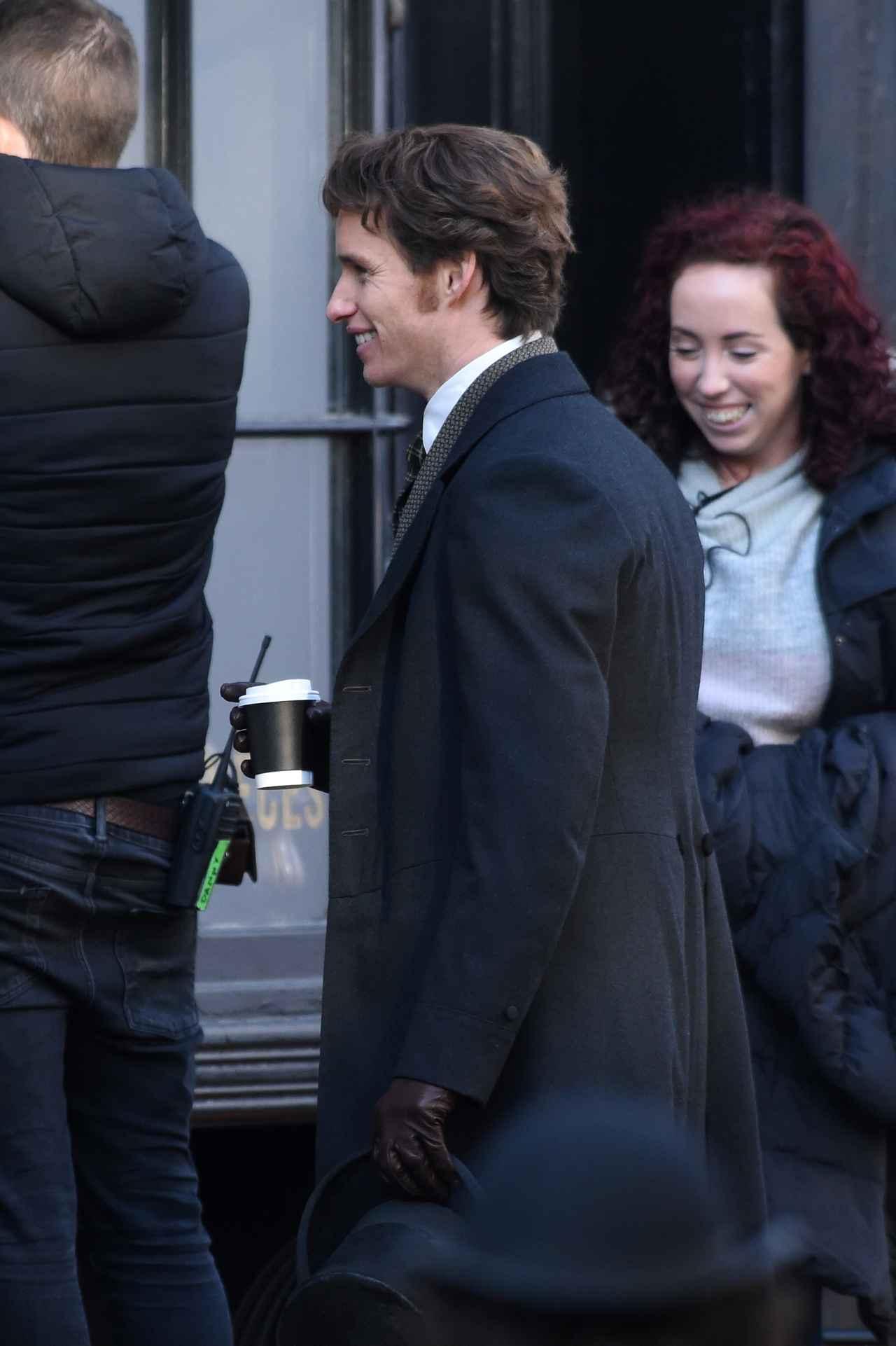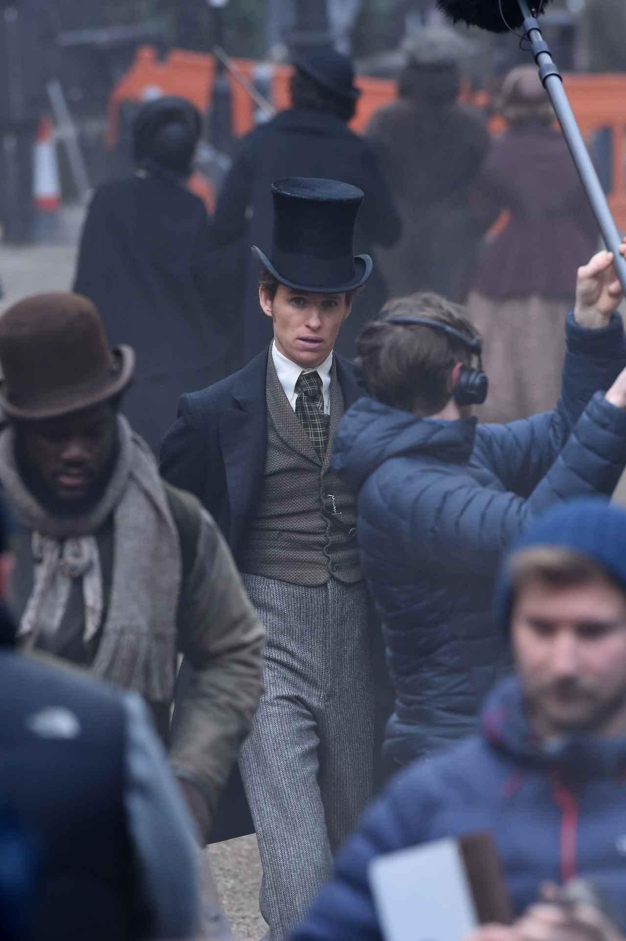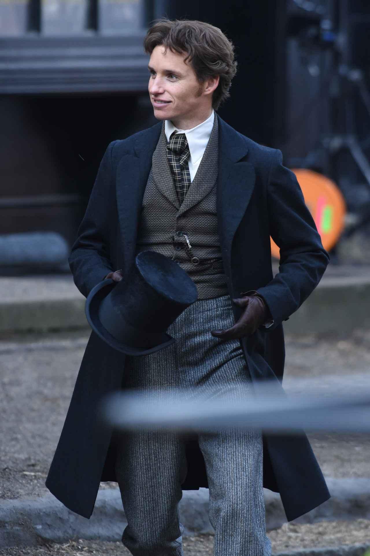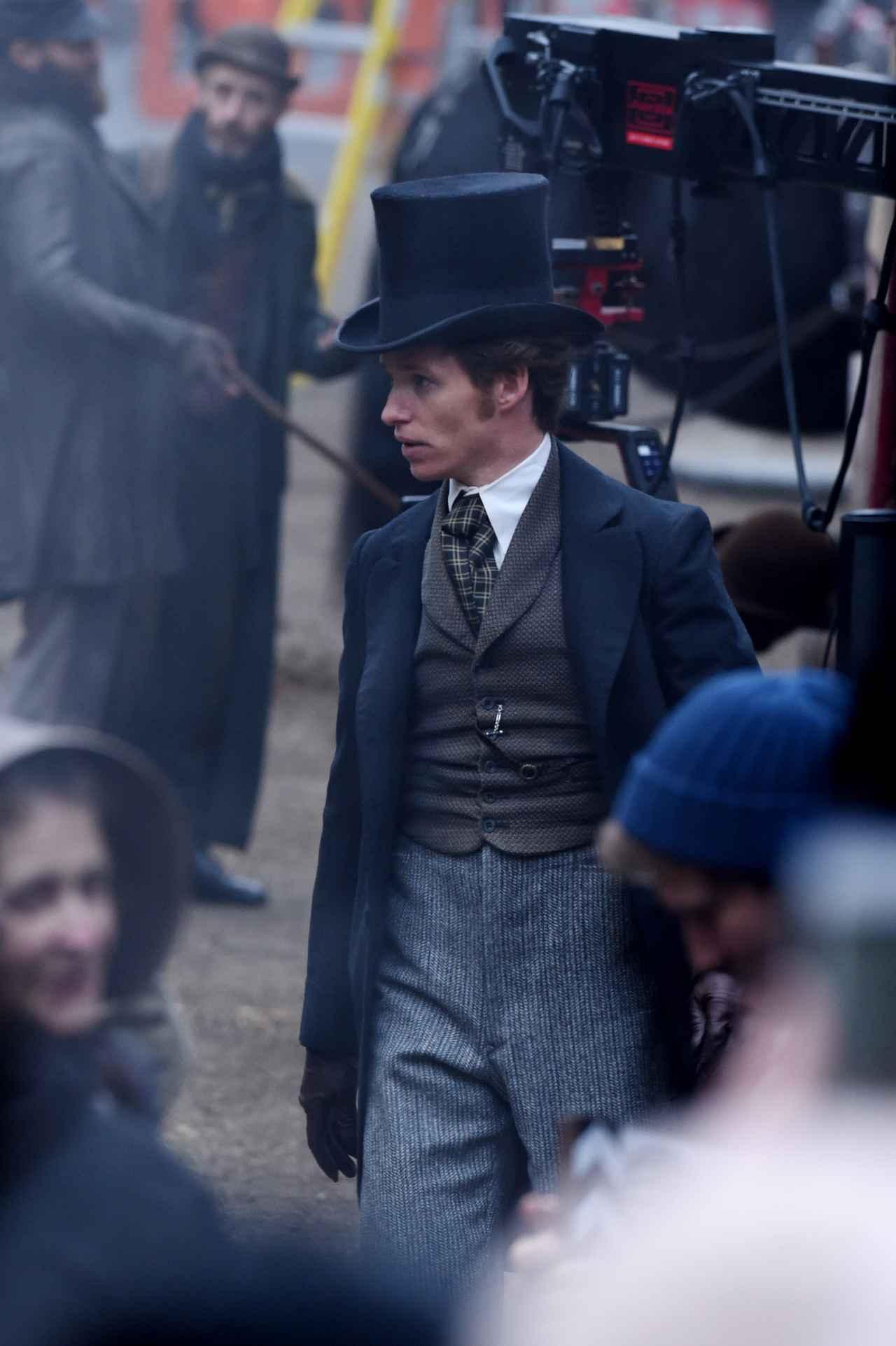 そんな同作の撮影現場で、当時の時代を思わせるスーツやトップハットを着用し、神妙な面持ちで街を歩くシーンを撮影中のエディを発見。
