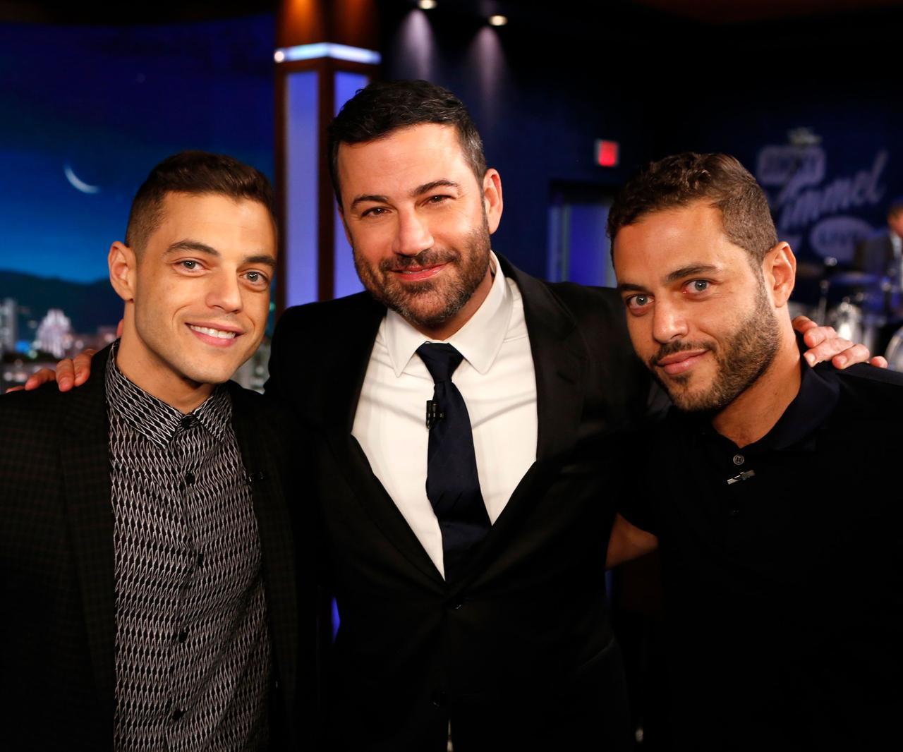 コチラがそのウワサの弟の写真。左に写るのがラミで、真ん中が人気トーク番組の司会を務めるコメディアンのジミー・キンメル、そして右に写るのが今ファンのあいだで「イケメン」と話題になっているラミの弟サミ・マレック。
