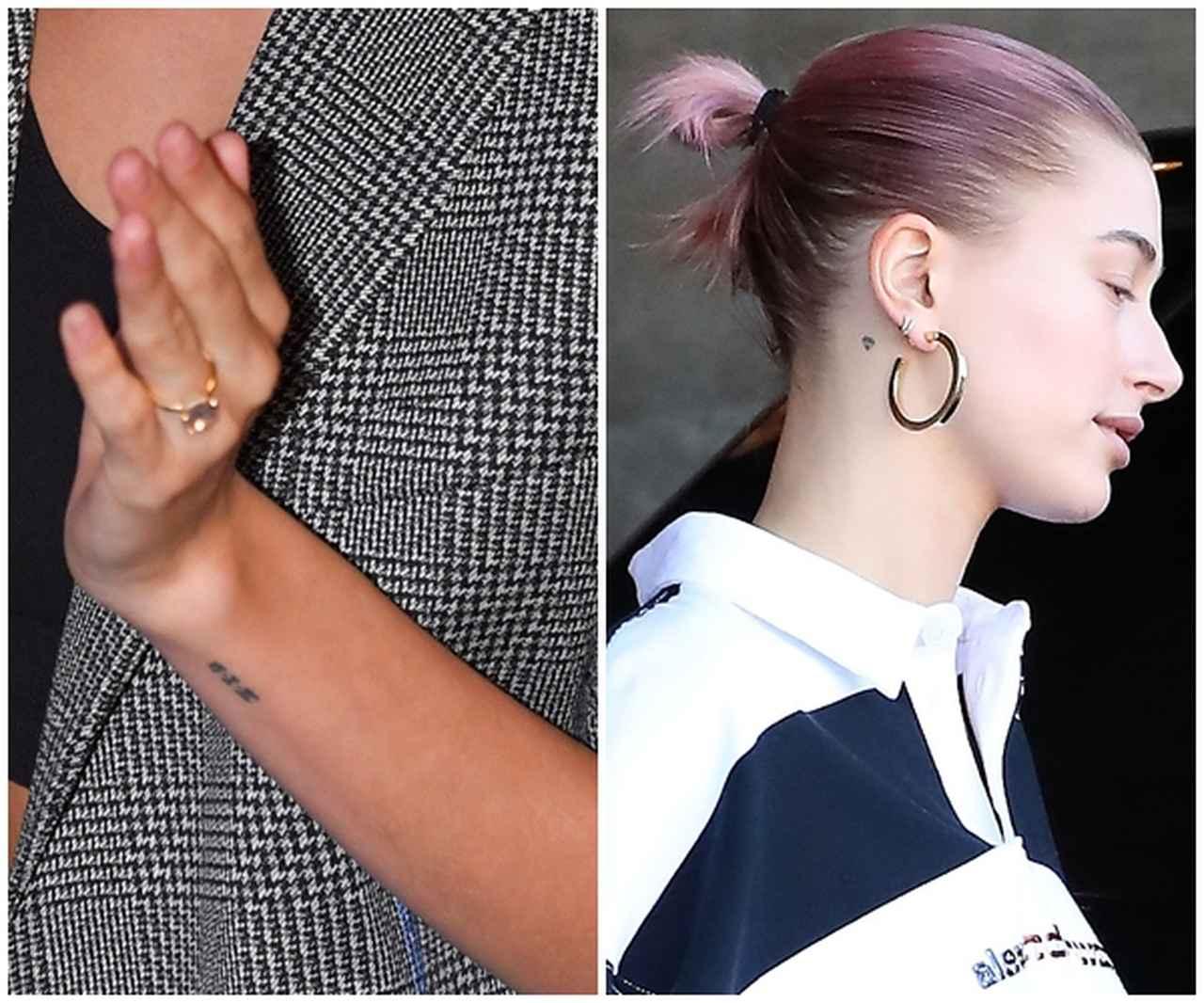 ヘイリー・ボールドウィンは手首、耳の後ろに小さいタトゥー。