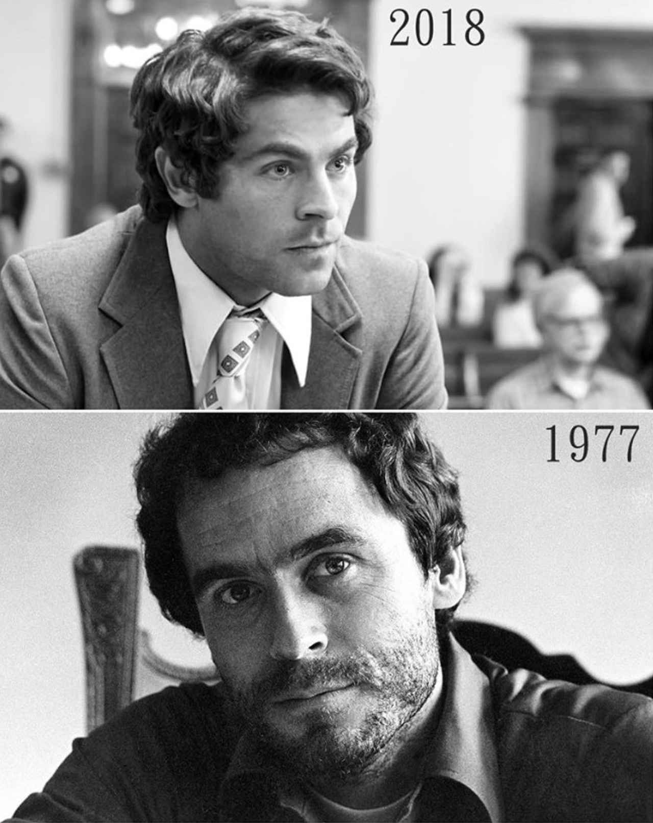 作品内でバンディになりきるザックとバンディ本人の比較。©Extremely Wicked, Shockingly Evil and Vile/Facebook