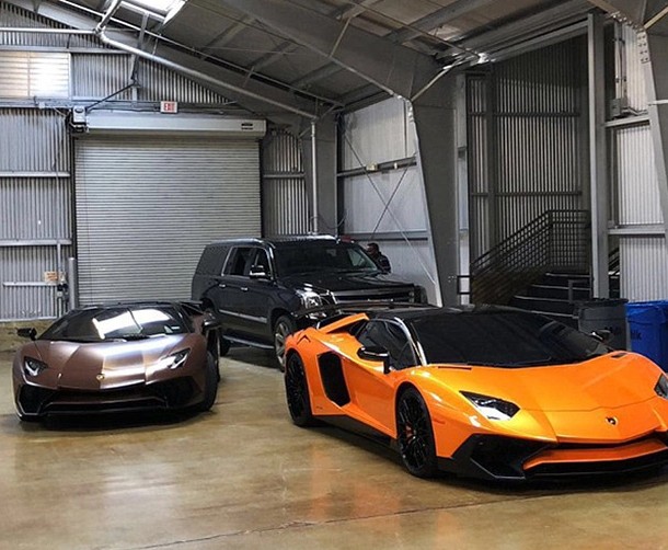 ちなみにカイリーも車好きで、同じくオレンジのランボルギーニを所有。ガレージに停まった2人のランボを堂々と公開して。