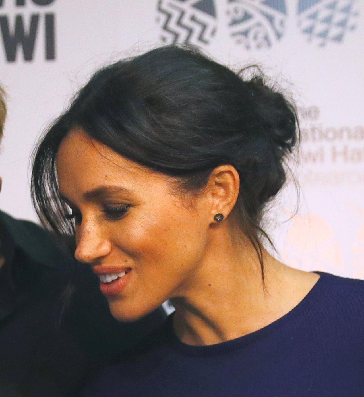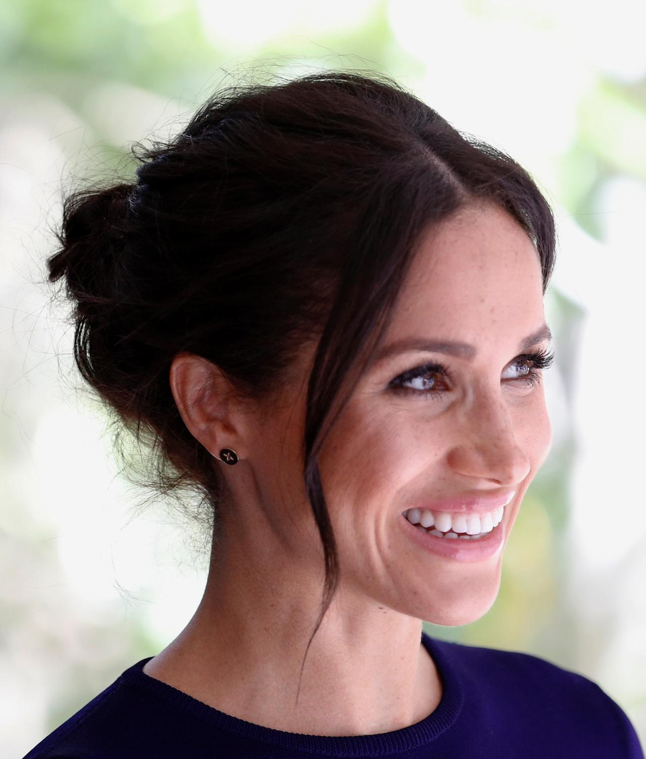 メーガン妃に学びたい、大人っぽくてセクシーなまとめ髪。後頭部でひとつにまとめた髪はボリュームを出さず、顔まわりにはゆるっとカールさせた後れ毛を残して。落ち着いた大人のセクシーさを出したいときの参考に!