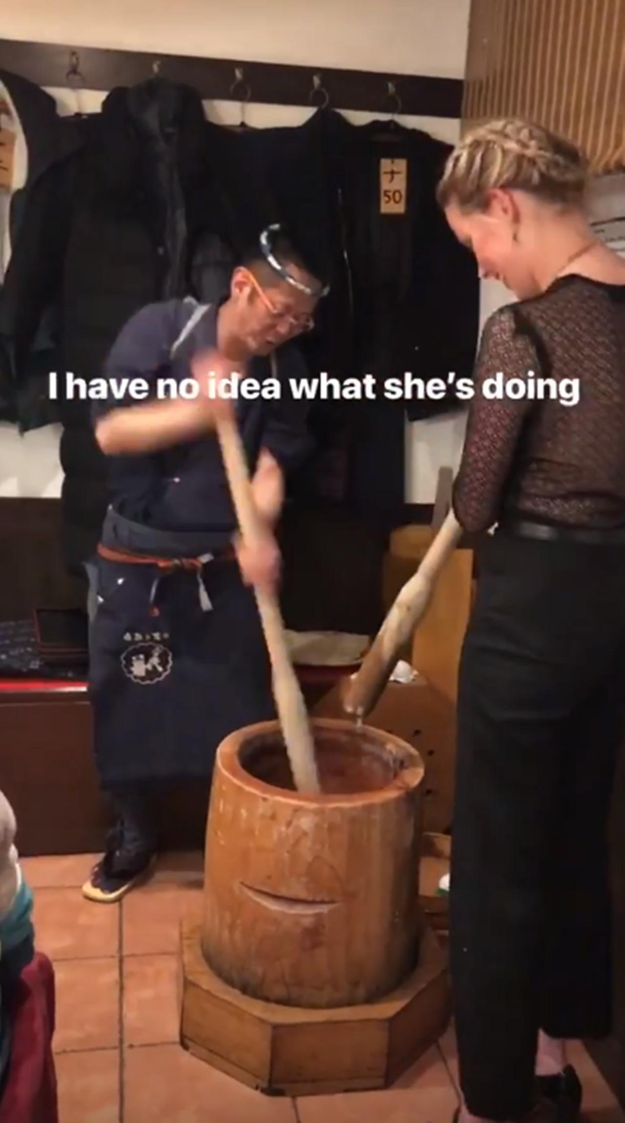 そこで「餅つき」に初挑戦!アンバーの専属メイクアップアーティストは、アンバーがこの時何をやっていたのかを理解できていなかったようだが、インスタグラムにアップされたストーリーには楽しそうに餅をつくアンバーの姿が映されていた。