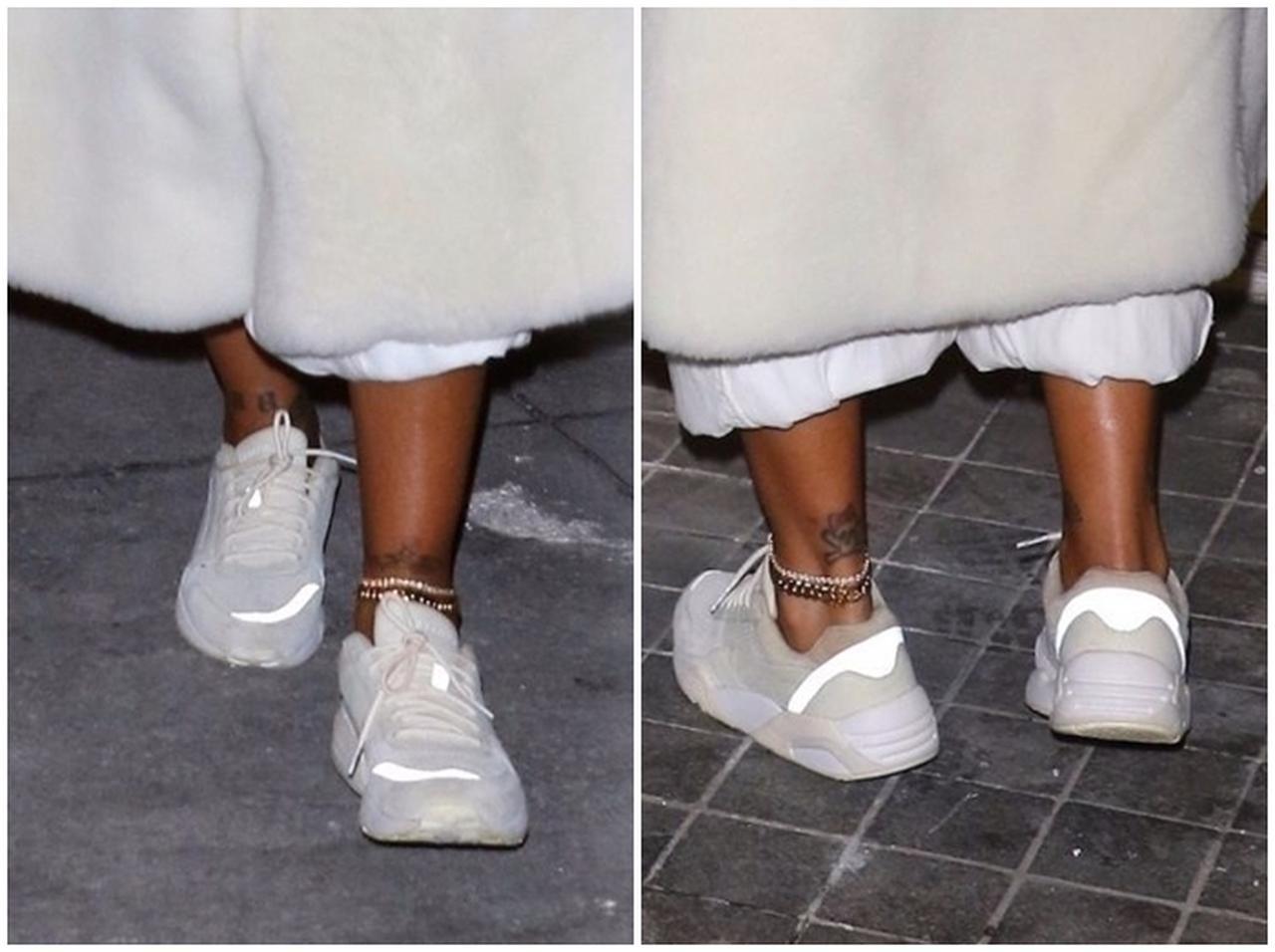 LA発のラグジュアリーストリートブランド、スタンプド(Stampd)とプーマのコラボレーションスニーカーを愛用するリアーナは、足首にはキラキラと光るゴールドのアンクレットをつけてセレブらしくアクセントを添えて。