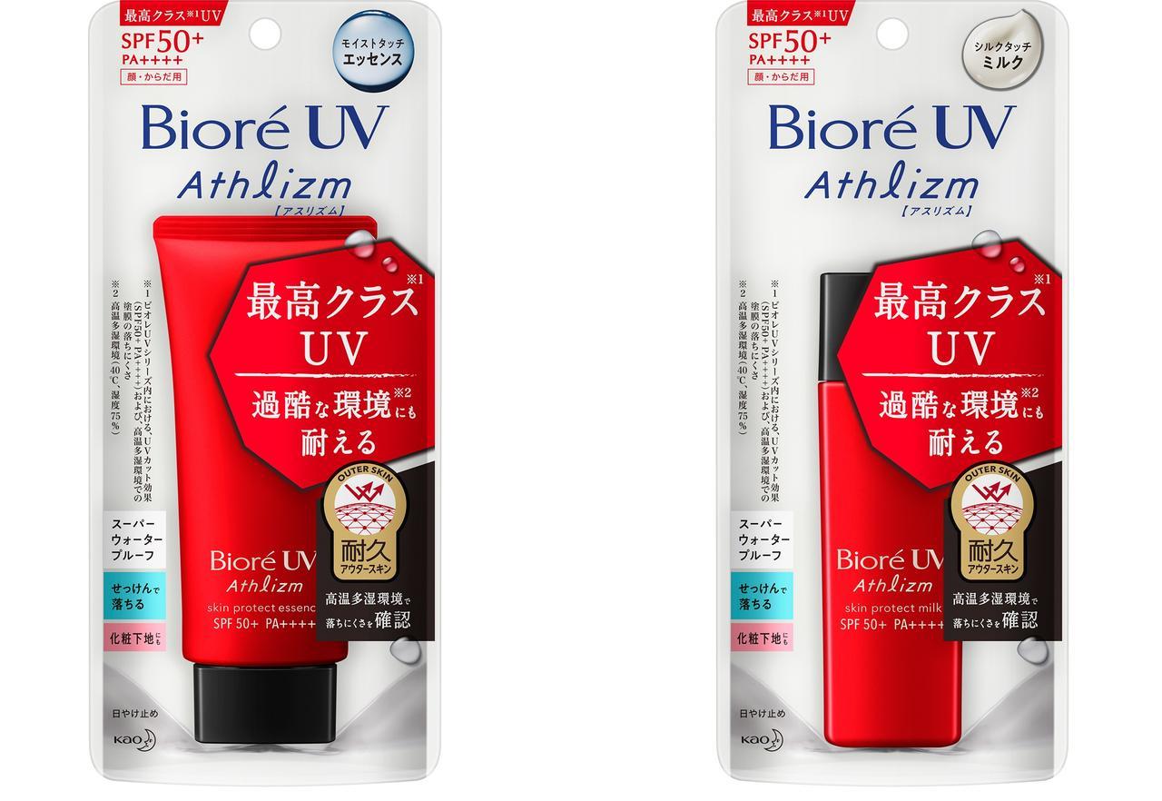 また「ビオレUV アクアリッチ」「ビオレUV アスリズム」はともに、UV機能は最高水準のSPF50+・PA++++。スーパーウォータープルーフ処方ながらも、せっけんで簡単に落とせるので安心。2019年2月9日に全国発売。