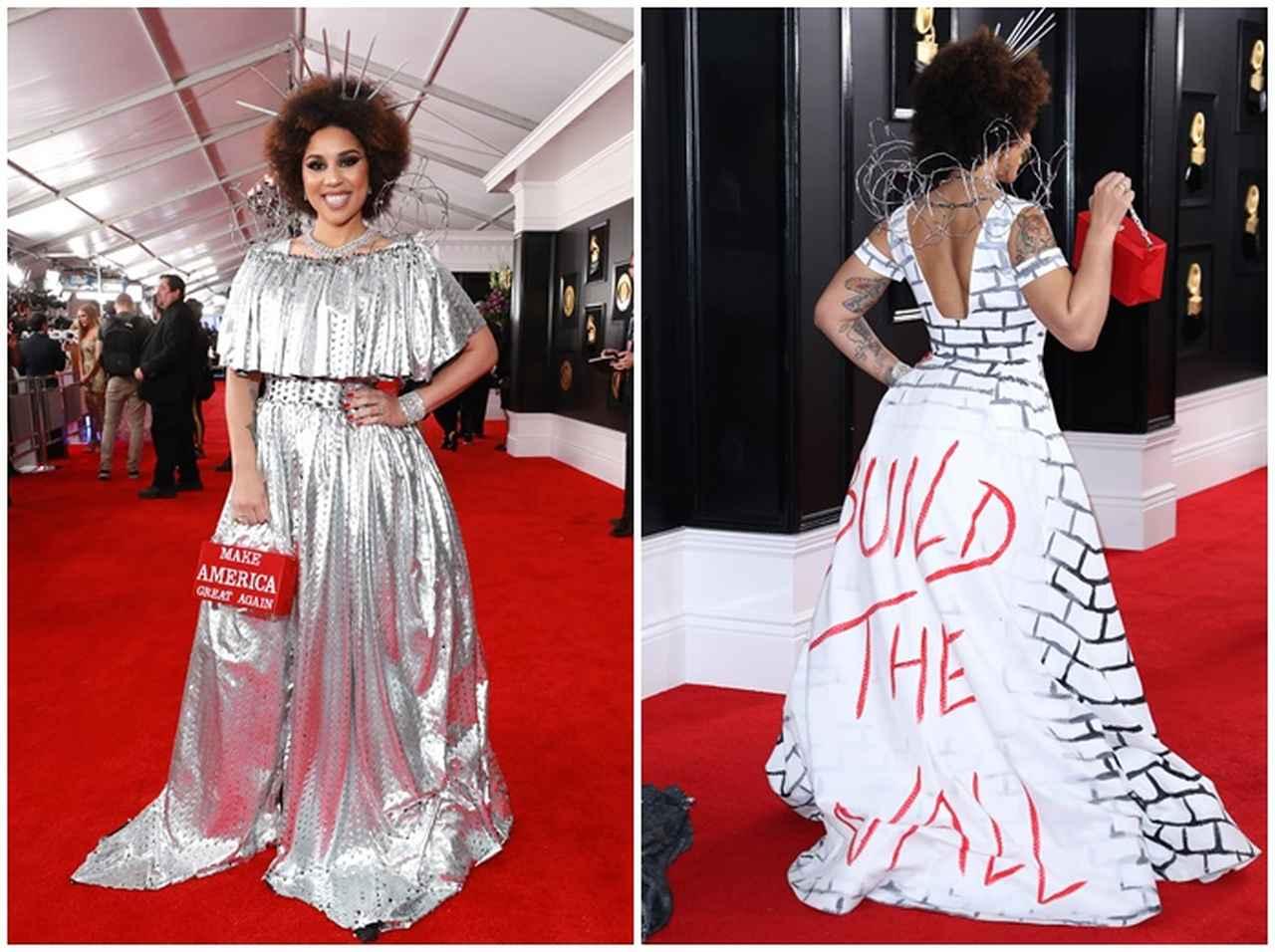 今回ジョイが着用したドレスは、トランプ大統領が以前から必要性を訴えているメキシコとアメリカの国境に壁を作るという政策に賛成するデザイン。