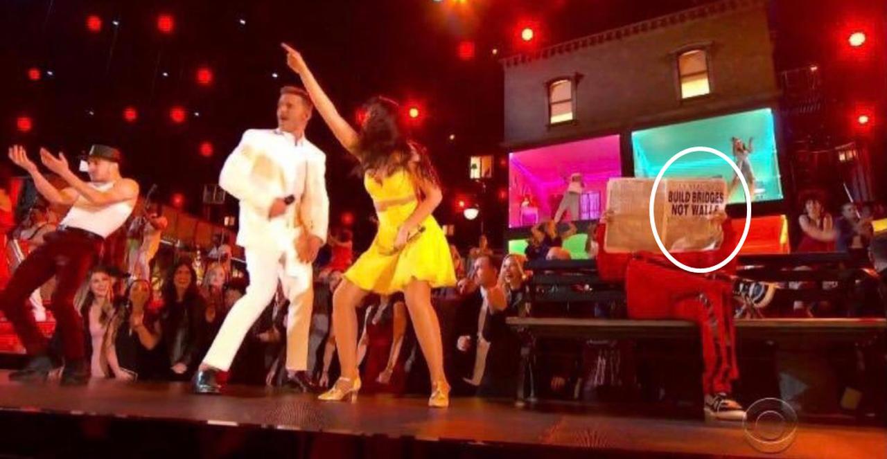 この日グラミー賞授賞式のオープニングを務めたカミラ・カベロが、ラテン系シンガーのリッキー・マーティンと一緒にパフォーマンスしている途中に、「ある演出」を仕掛けた。それは、J・バルヴィンが読んでいる新聞に「壁ではなく橋を作ろう(Build Bridges No Wall)」という見出しを目立つように大きく打ち出すという作戦。