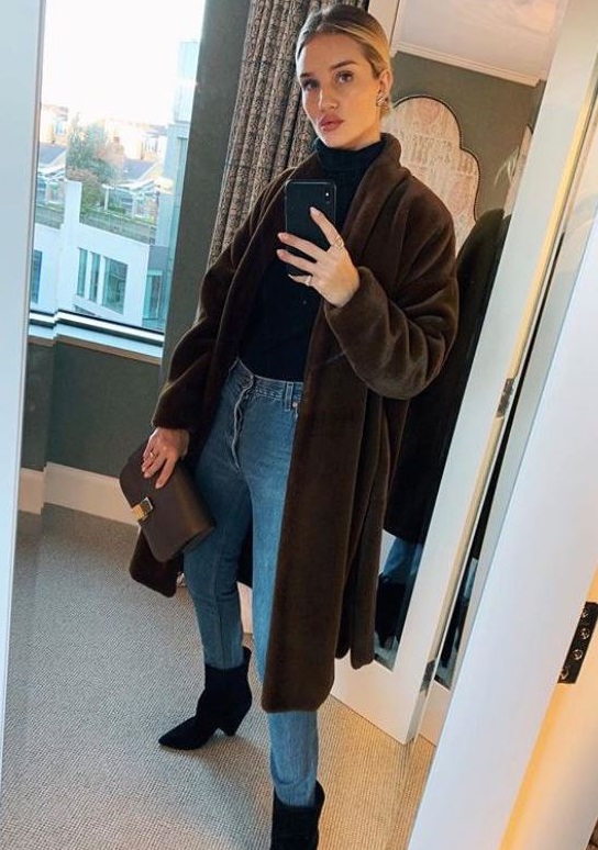 日頃からセリーヌのアイテムには目がないトップモデルのロージー・ハンティントン・ホワイトリーは、ダークブラウンのコートに合わせ、同色のセリーヌのクラシックボックスバッグを愛用。