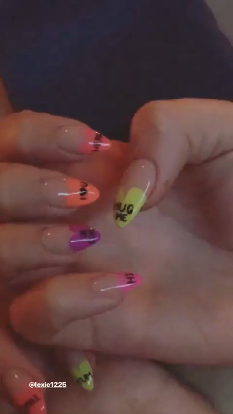 アリアナは、インスタグラムストーリーに投稿した動画の中で、まず、友人女性のバレンタインネイルを紹介。