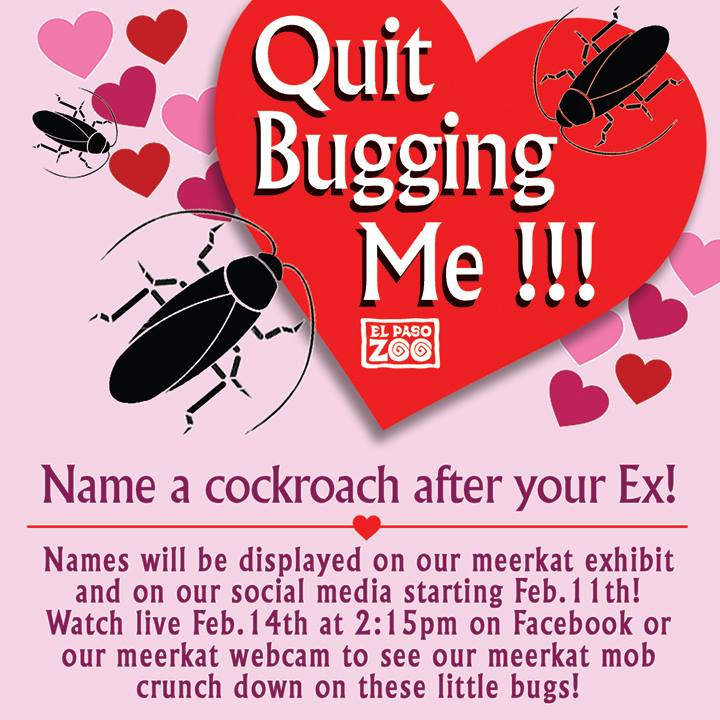 今回のバレンタインデーイベントを企画したエル・パソ動物園は、バレンタイン当日にフェイスブックライブと動物園公式サイトのミーアキャットカメラで、ゴキブリを食べさせる映像をライブ配信予定。(フロントロウ編集部)