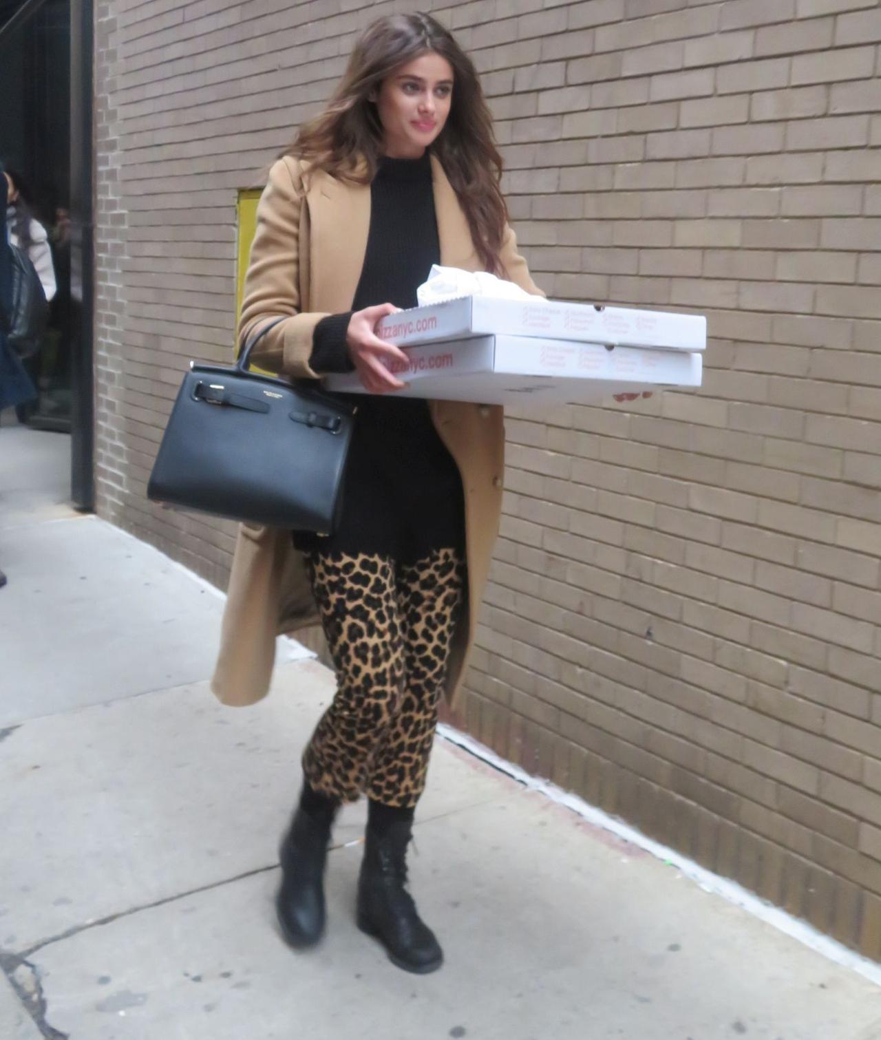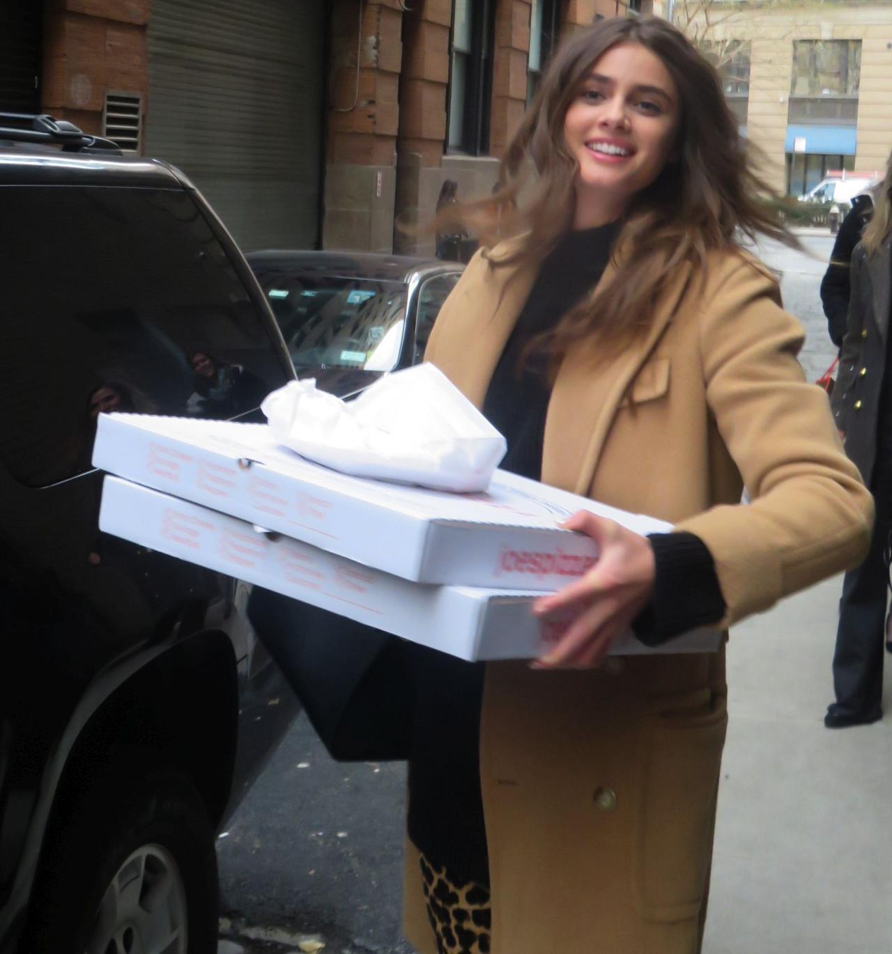 そのまま巨大な2ホールのピザを抱えたままスタジオの中へ入ったテイラーは、ショーに出る前の受付をする時までピザを大事そうに抱えている姿が目撃された。