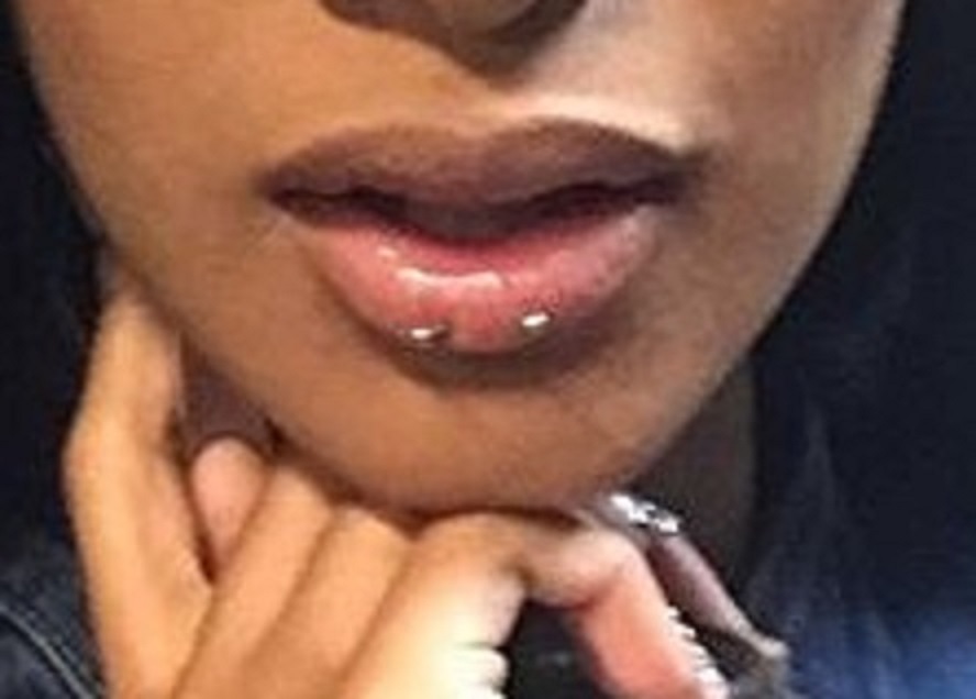 カーディは、下唇の中央という意外な場所に新たなピアス穴を開けた。