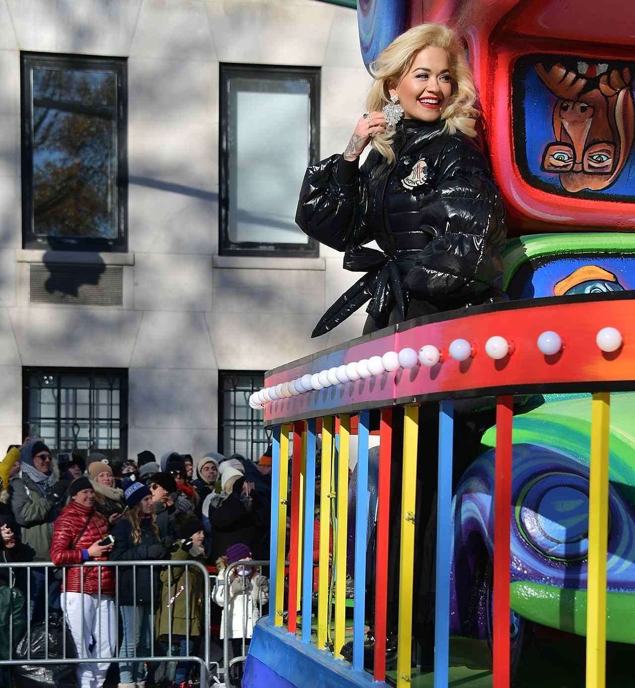 真冬のイベントに出席した人気シンガーのリタ・オラは、モンクレールのロゴがアクセントになったダウンを愛用。