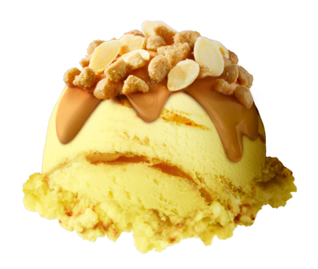 「ザクザクとした食感と濃厚なキャラメルが人気のお菓子“フロランタン※”の味わいから着想を得ました。スライスアーモンドとバタークッキーのトッピングの下に敷いたキャラメルコーティングとキャラメルバタースカッチアイスクリームの濃厚な味わいが、香ばしいアーモンドを引き立てます。※フロランタン サブレ生地に、キャラメルコーティングをしたアーモンドを載せて焼き上げた人気のお菓子。」