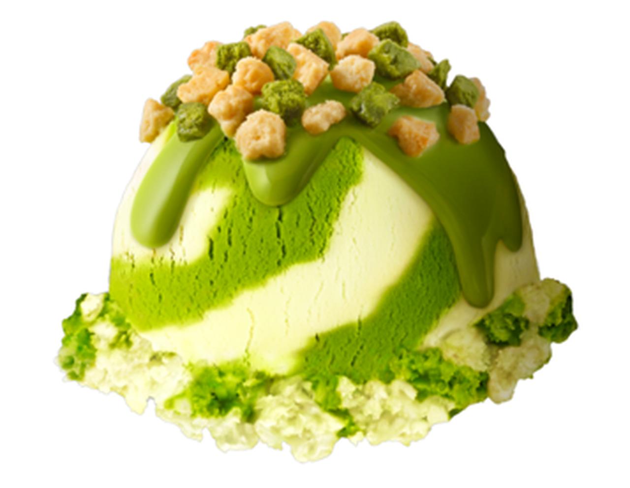 「上品な香りとコクが楽しめる近年人気のスイーツ “抹茶チーズタルト”から着想を得ました。抹茶とチーズの組み合わせは、味だけではなく見た目もお楽しみいただけます。トッピングの下に敷いた抹茶コーティングが、香り高い抹茶アイスクリームとコクのあるチーズアイスクリームの組み合わせを引き立てます。