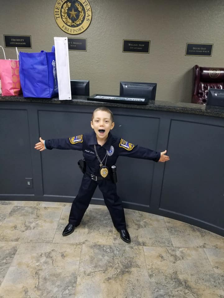 病気を患いながらも力強く夢を語る彼女の姿に心打たれたレイは、彼女を警察官にしてあげたいと、すぐに様々な手続きに取り掛かることにしたそう。すると、地元警察のフリーポート警察署も職員総出でアビゲイルちゃんを名誉警察官にしてあげることに賛同。さらには、彼女のための特別な小さなサイズの制服やバッチなどは、地元ショップが無料で提供してくれることに。そしてついに、警察官になるための宣誓式を署内で開催。