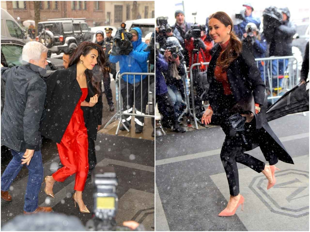 会場に到着したアマル・クルーニーとジェシカ・マロニー。