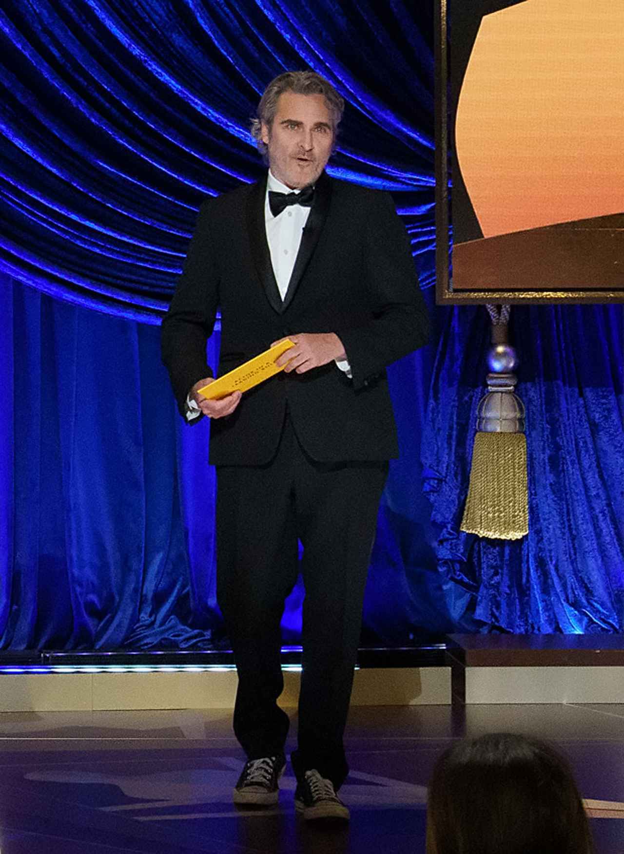 世界各国で大ヒットを記録した映画『ジョーカー』で主人公のアーサーを熱演し、2020年のアワードで賞を総なめにした俳優のホアキン・フェニックス。第92回アカデミー賞授賞式で主演男優賞を受賞したホアキンがこの日着用したのは、2021年のアカデミー賞授賞式にプレゼンターとして登場した際、2020年にありとあらゆる賞を受賞した際に着用してきた※ステラ・マッカートニー(Stella McCartney)のスーツだった。幼いころから食生活をヴィーガンに徹底するなど、環境問題の解決について熱心に取り組んでいるホアキンは、サステナビリティの観点からスーツを着回していた。