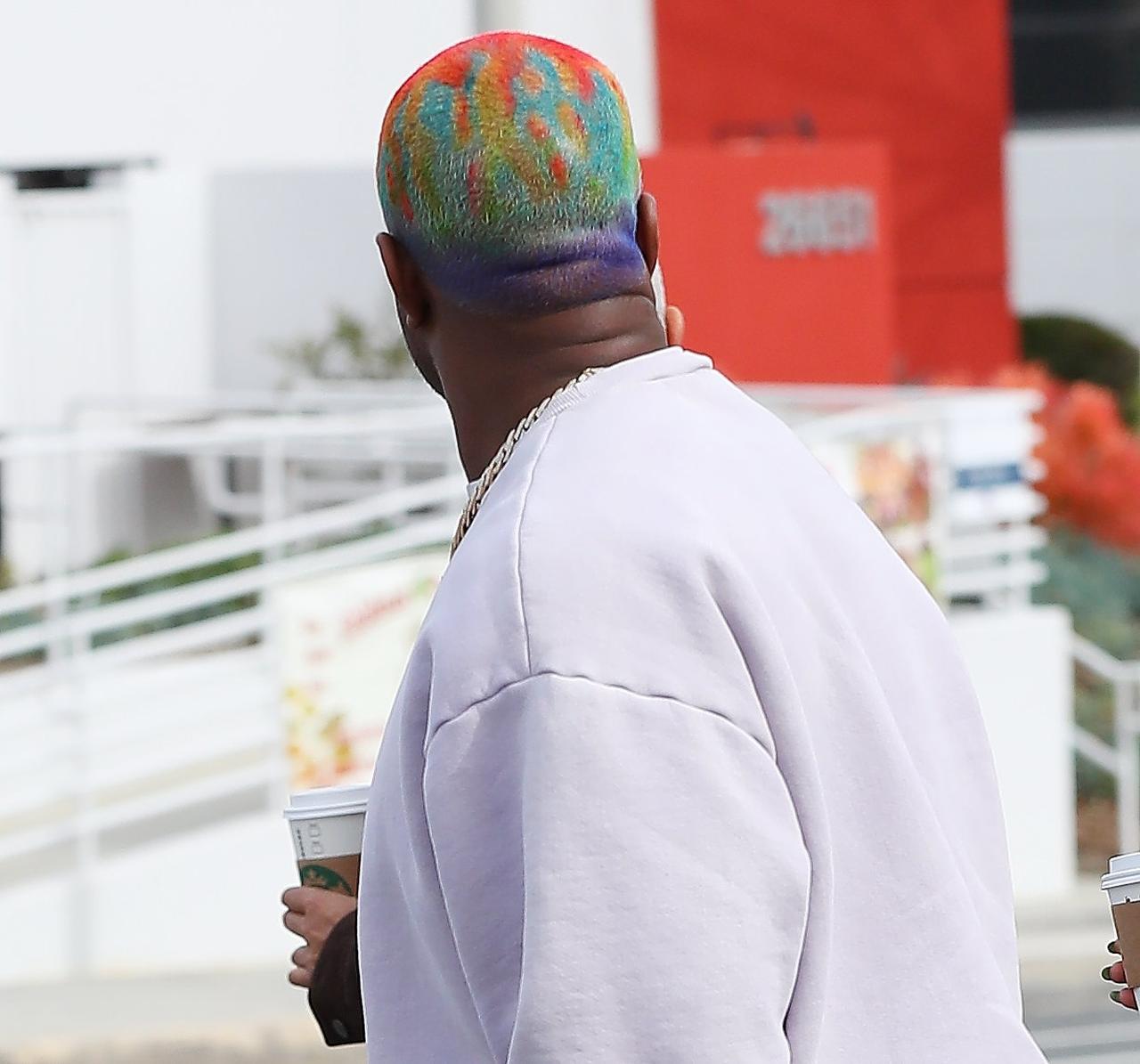 最近はブロンドカラーに落ち着いていたカニエだが、今回は大胆にもレインボーカラーにイメチェン。