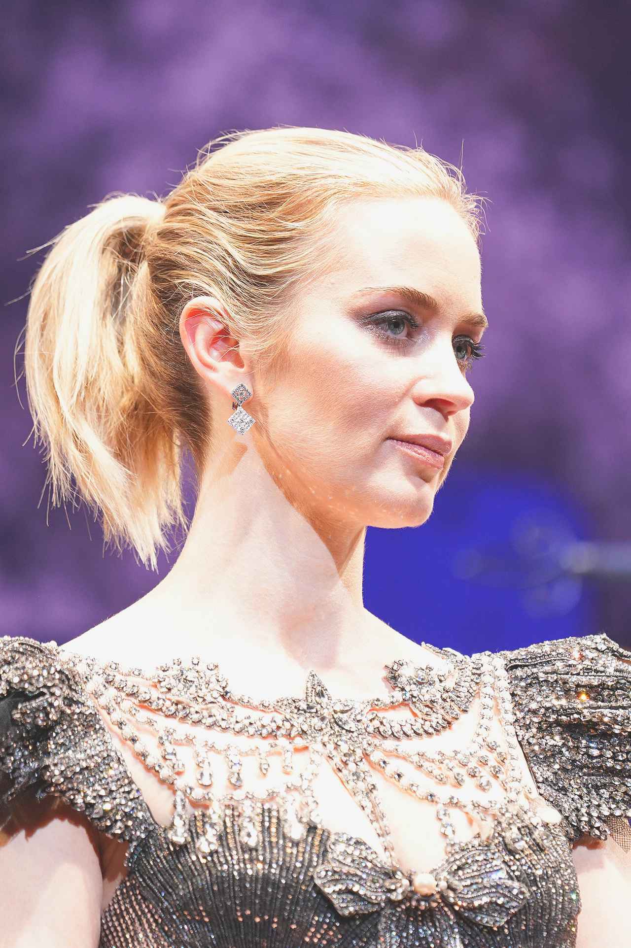 女優のエミリー・ブラントも、さっそくトレンドの「ラフ・ポニー」を披露している。ロングでなくてもできるヘアスタイルだから、伸びかけのヘアのアレンジにもオススメ。