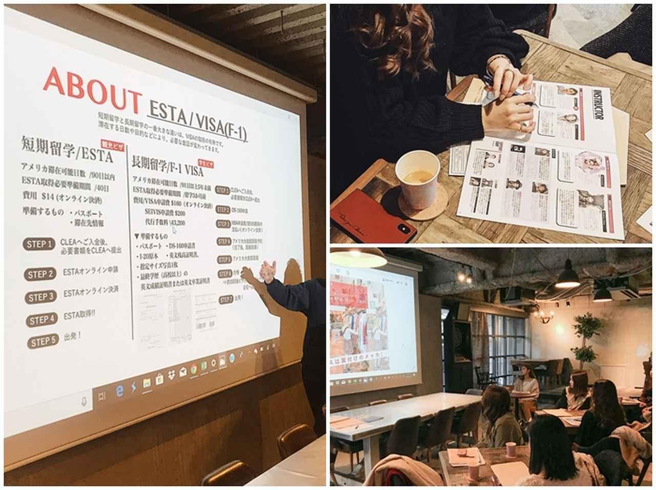 ロサンゼルス留学をきっかけにブランドを創ったプロデューサーや、CLEA留学経験者を招き、ロサンゼルスの魅力に関する説明会を、おしゃれでカジュアルなスペースで開催している。