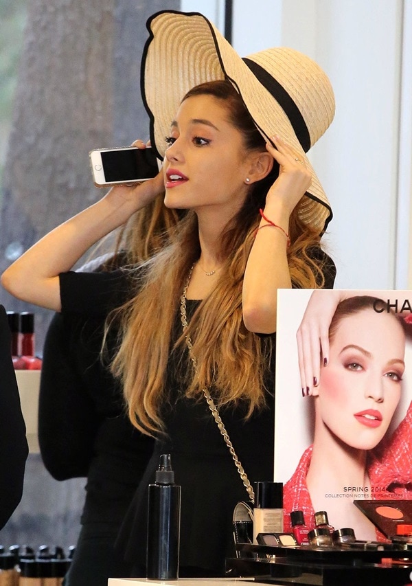 コスメショップでショッピングをする世界的シンガーのアリアナ・グランデ。