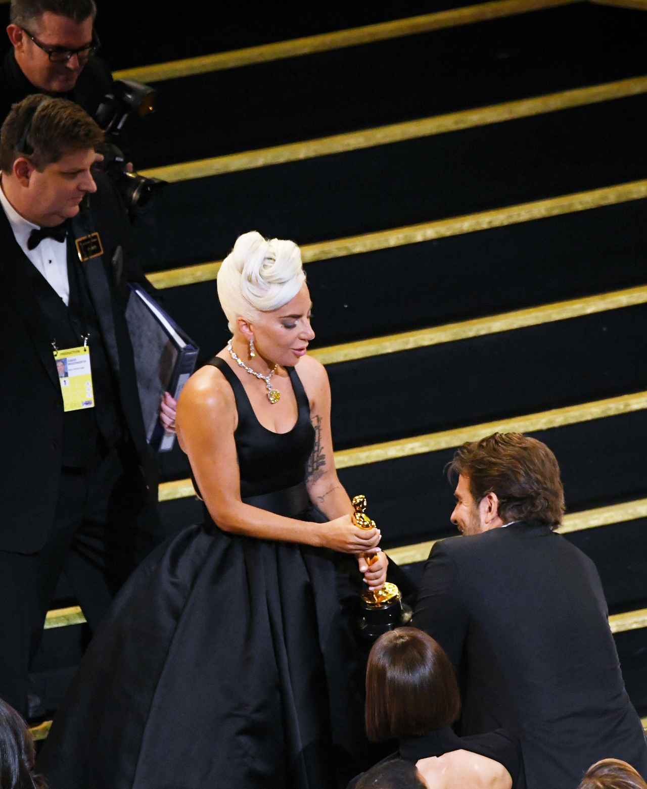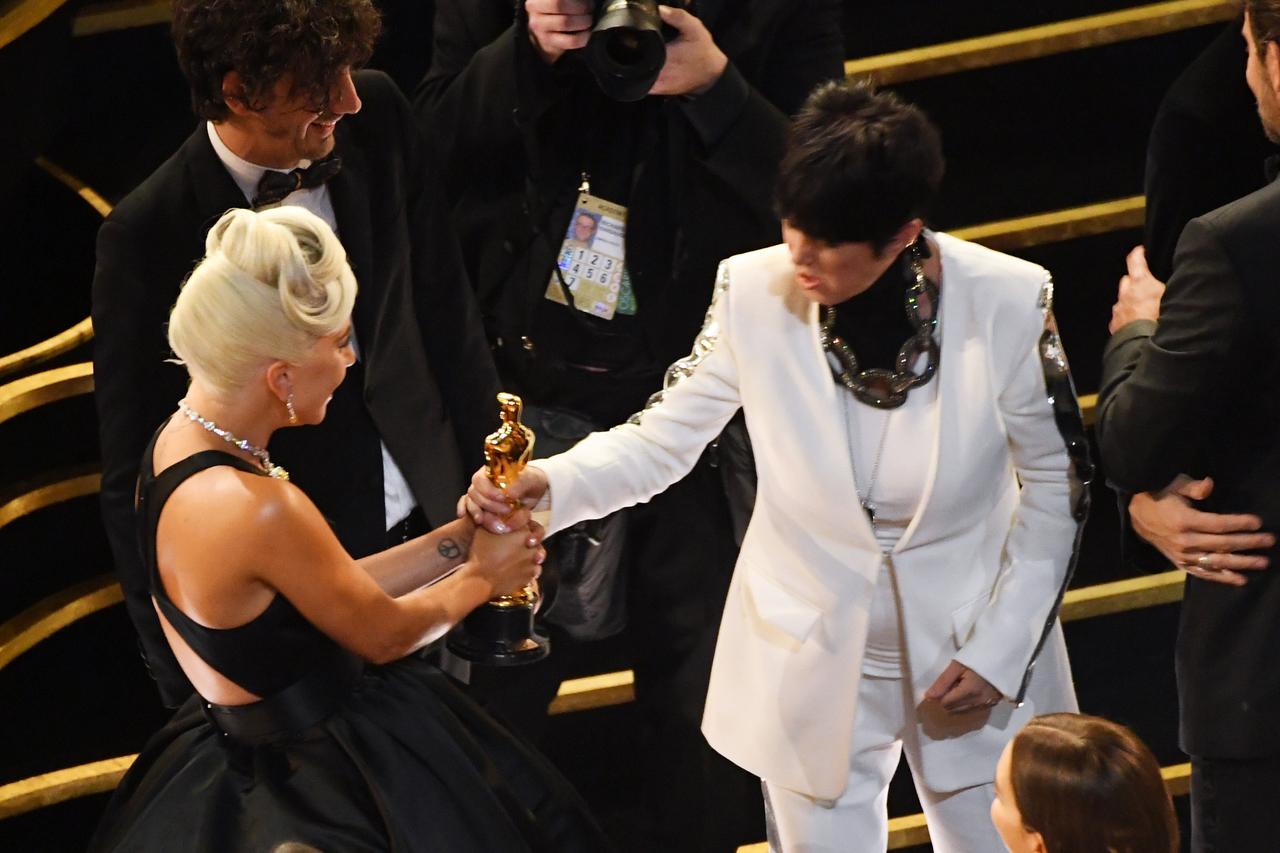 主演映画『アリー/スター誕生』の主題歌で人生初のアカデミー賞を受賞したレディー・ガガ。オスカー像を受け取った時には涙の受賞スピーチを見せたガガだが、観客席に戻ると、オスカー像を手に観客席をウロウロ。