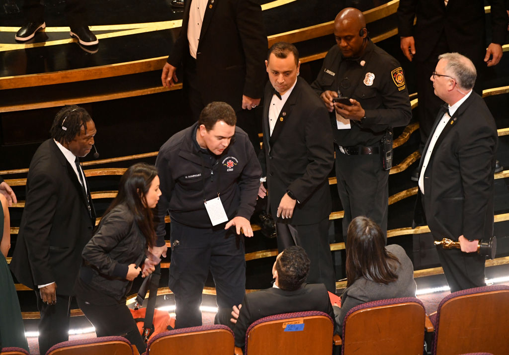 幸い、ラミに怪我はなかったものの、一瞬周囲は騒然とした雰囲気に。近くにいた数人の人々に抱き起こされ、急遽会場の最前列の席に腰を下ろしたラミの元を救護班が訪れ、無事を確認するという場面も見られた。