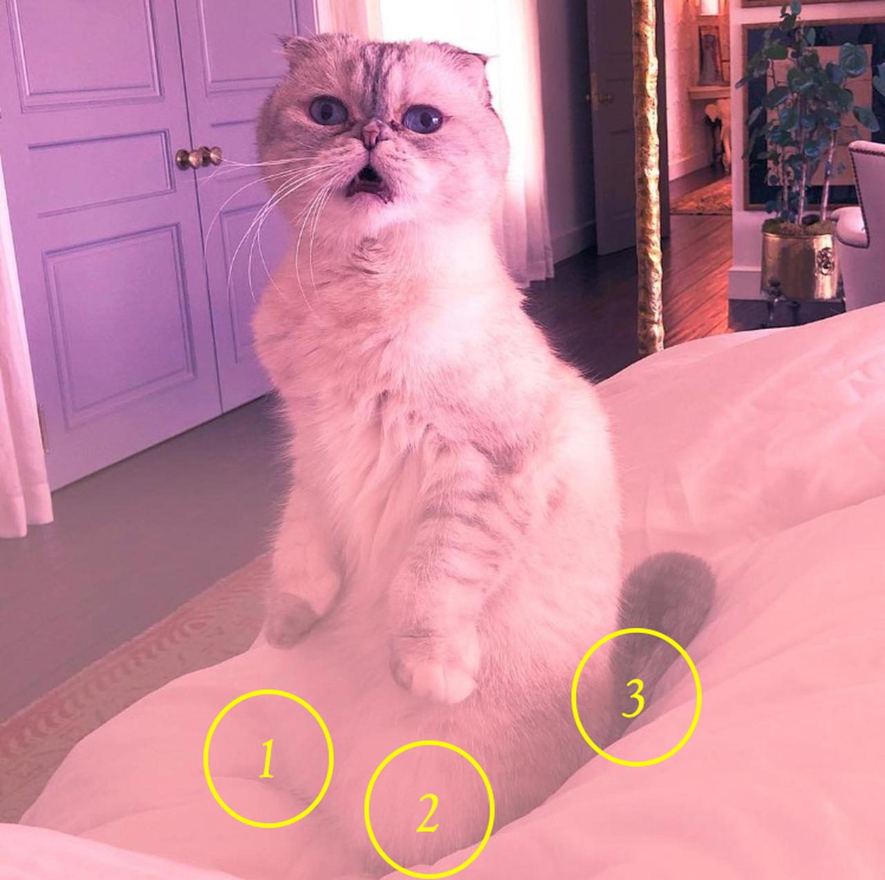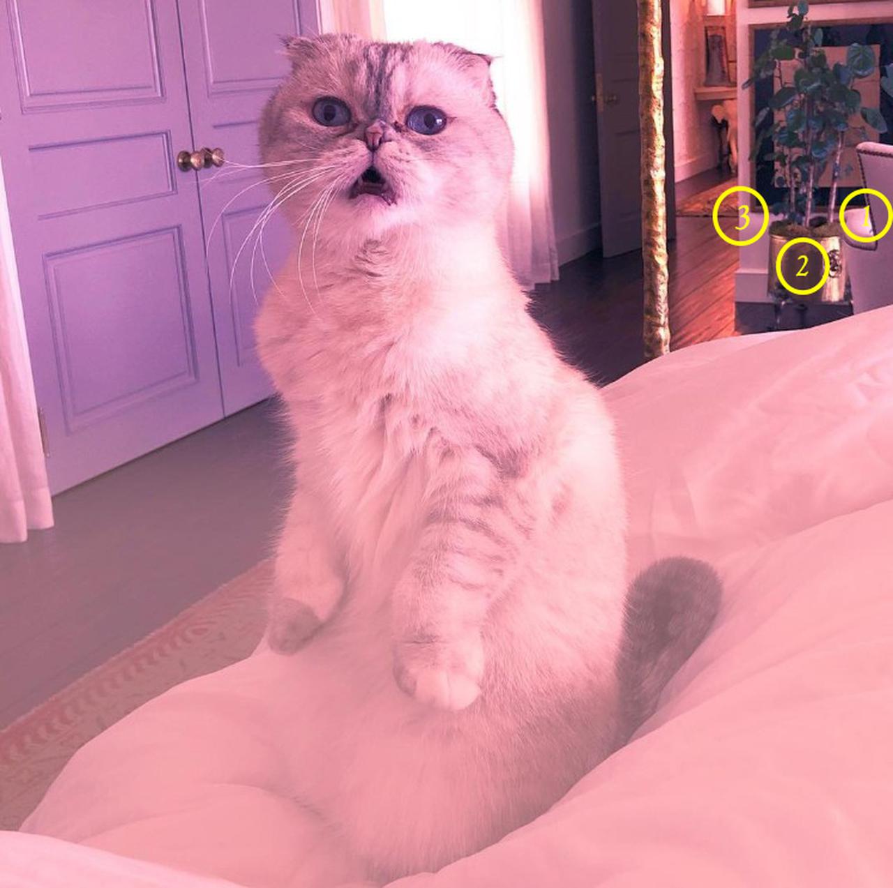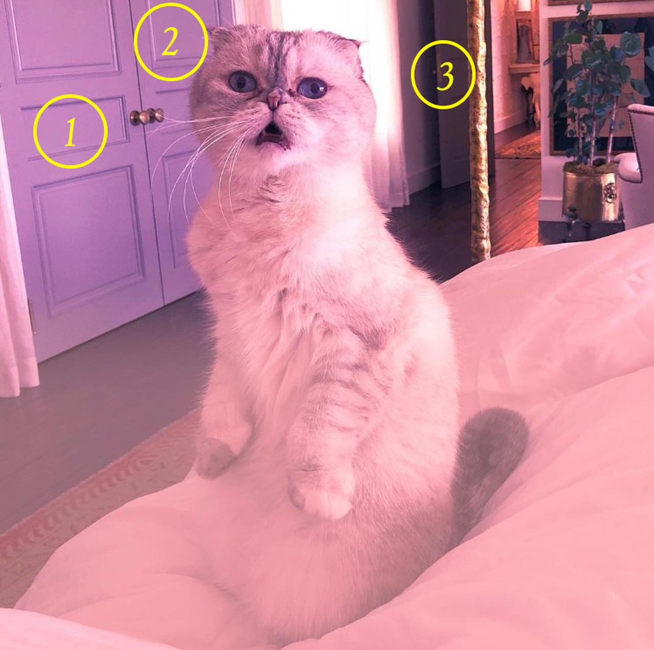 濃厚だとみられている説のなかには、猫のメレディスの足が4本あることから「4」、もしくは、前回の投稿から1日空けての投稿となることを踏まえて、背景に写っているドアの数が3つだから「3」、または、メレディスが後ろ足と尻尾の3つで体を支えて立っているから「3」、背景に写り込んだ鉢植えの植物の幹が3本あるから「3」といったものがある。