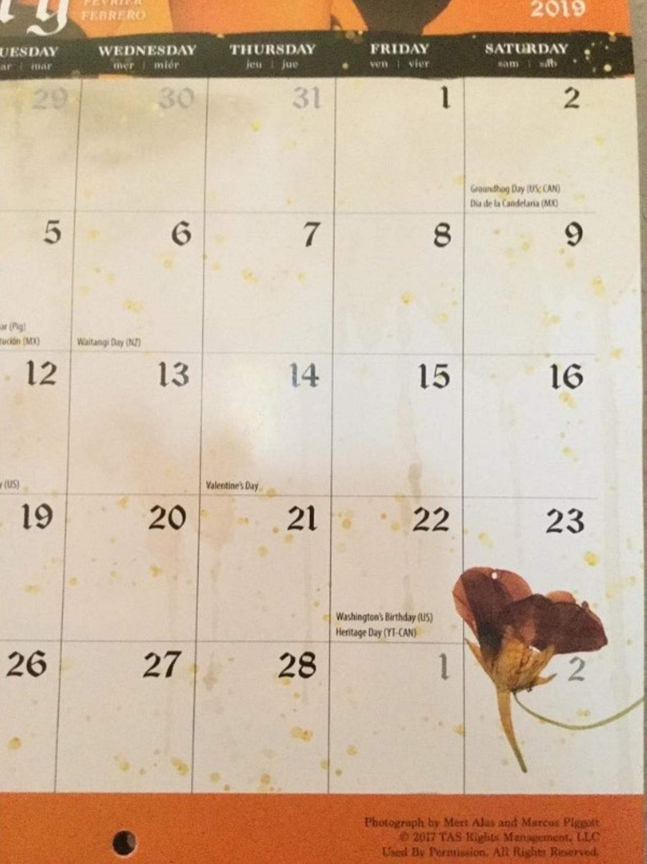 2月のページの最後の段の3月2日の欄にはなぜか「押し花」の印が。©BeFearlessBeYou/Twitter