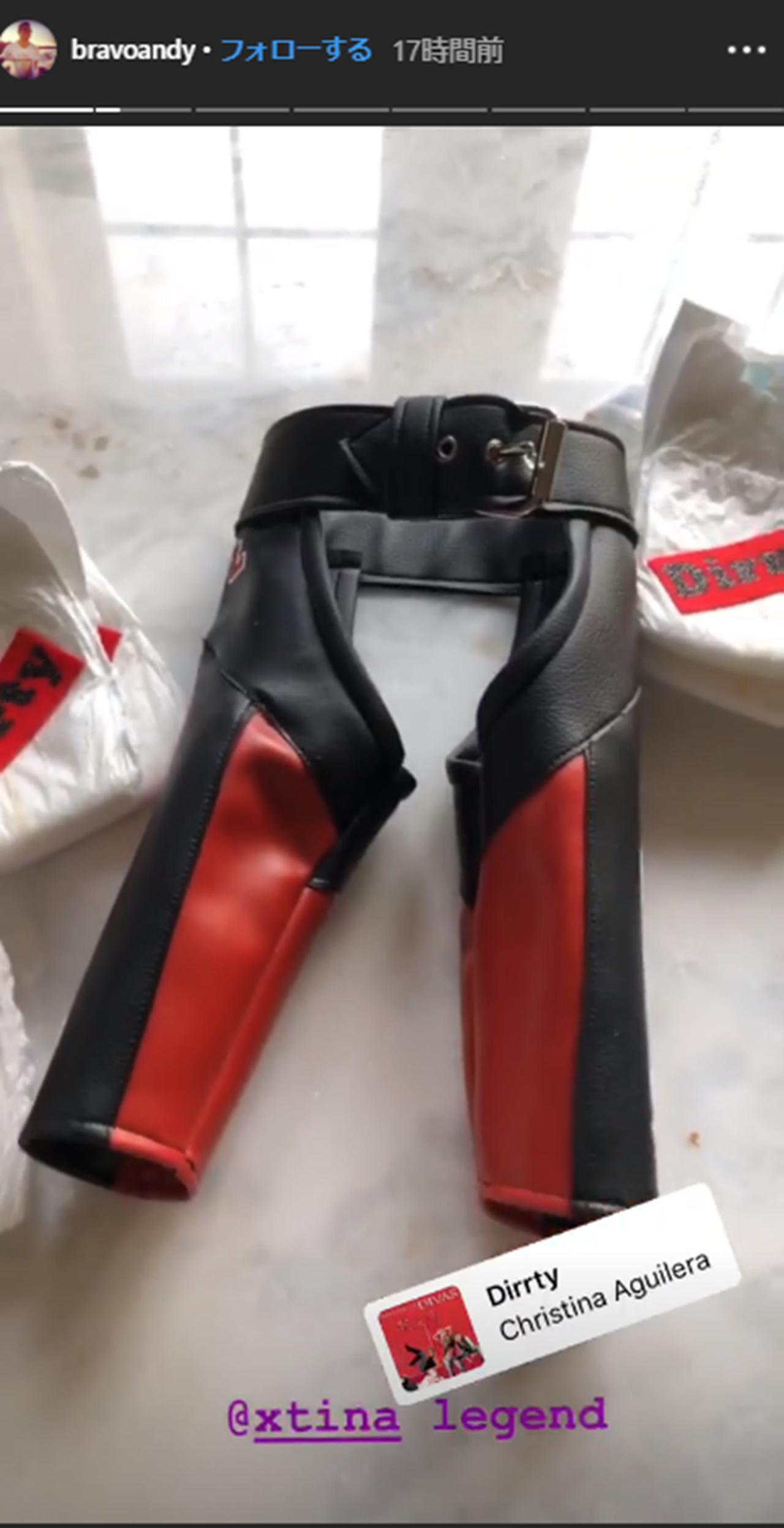 クリスティーナの代表作のひとつを取り入れた粋なプレゼントをもらったアンディは、「男児用のチャップスを作ってくれたんだ。『ダーティー』のレザーカスタムチャップスだよ!」と、インスタグラムにアップした動画で大興奮した。(フロントロウ編集部)