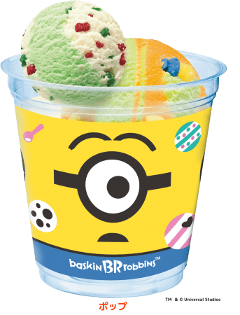 映画「怪盗グルー」シリーズでおなじみの、バナナが好きな謎の生物 ”ミニオン” は、なんだか憎めないキャラクターでみんな夢中の人気者。ミニオンキャンペーンでは、スモールダブルカップ、レギュラーダブルカップを購入で、好きなアイスクリーム(ポップスクープサイズ)を1個プレゼント。