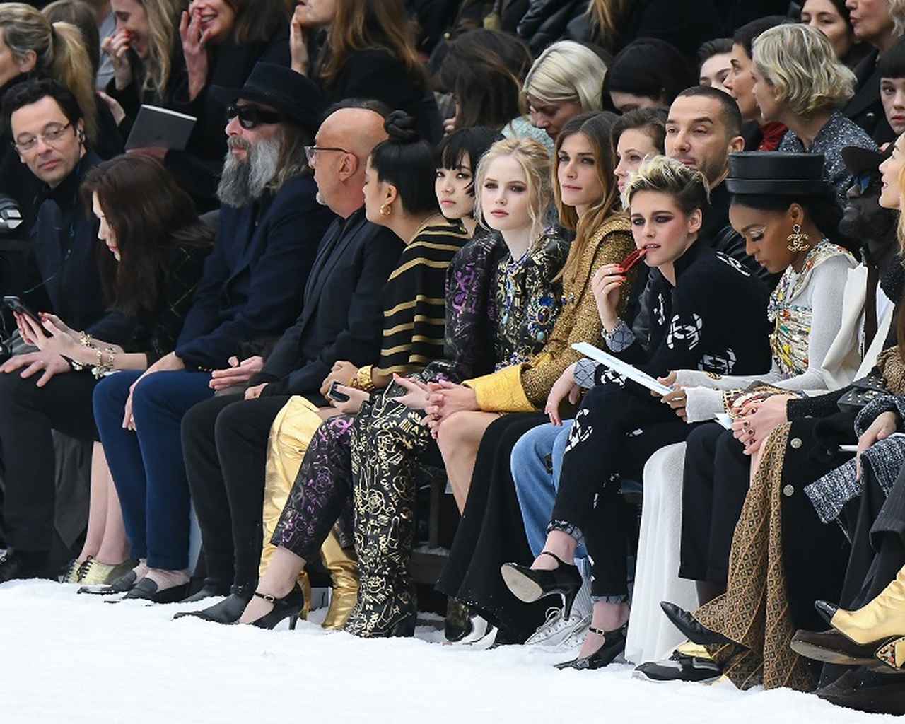 さらにフロントロウには米VOGUE誌の編集長アナ・ウィンターのほか、元祖スーパーモデルのクラウディア・シファーやナオミ・キャンベル、女優のクリステン・スチュワート、やアシュレイ・ベンソン、シンガーのジャネール・モネイ、日本からは女優の小松菜奈の姿があった。